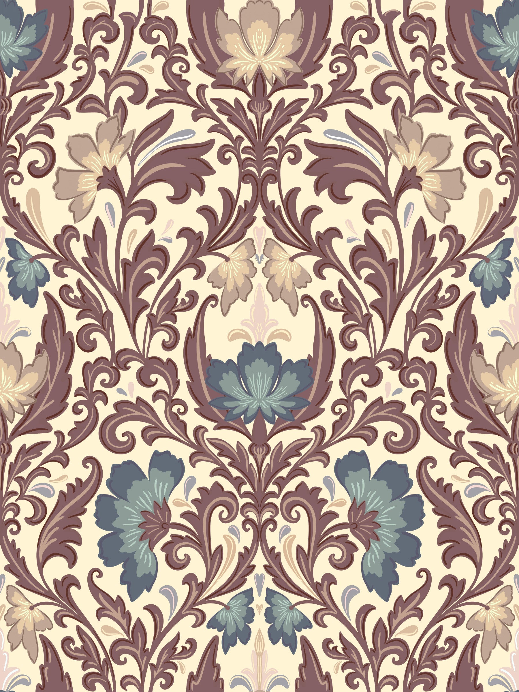 Rich Antique Floral Flourish regal damask wallpaper subtle hues.