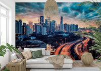 この印象的な都市景観で、インテリアをワンランクアップさせましょう。このダイナミックなデザインは、夜明けの魔法のような時間に溢れる都会のエネルギーを捉えています。柔らかな色合いに染まった空を背景に、洗練された高層ビルがそびえ立ち、光のリボンが賑やかな道路の軌跡を描きます。この壁紙は、リビングルーム、オフィス、玄関に躍動感と活気に満ちた生活をもたらします。豊かな色彩と細部までこだわったデザインは、モダンでミニマルなインテリアにも調和する洗練された美学を生み出します。この魅惑的な都会のパノラマで、あなたの空間を現代的な安らぎの空間へと変貌させましょう。