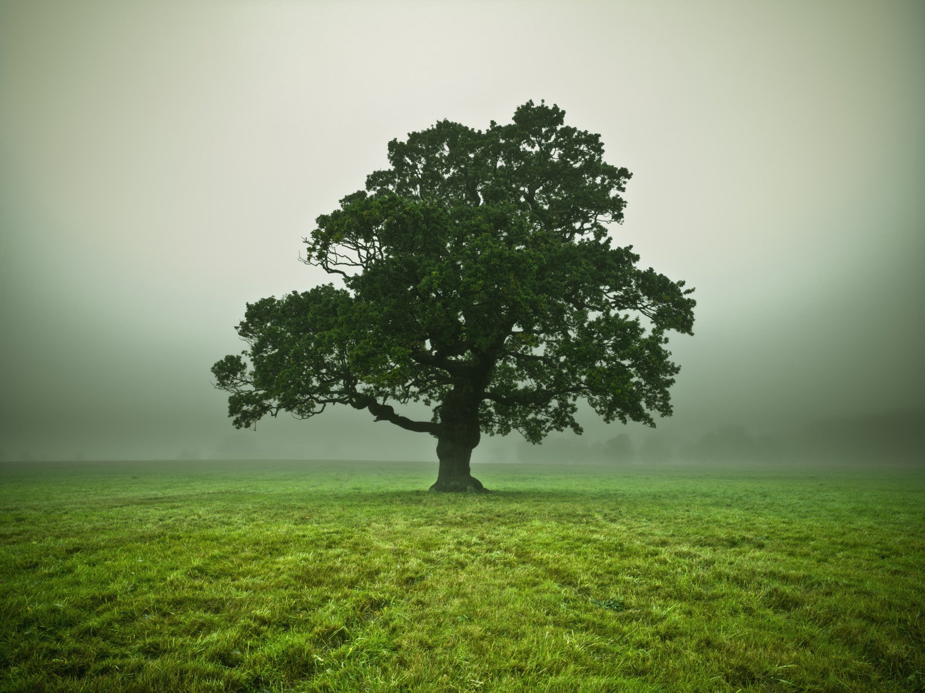 Single Ethereal Presence tree wall mural foggy landscape image.
