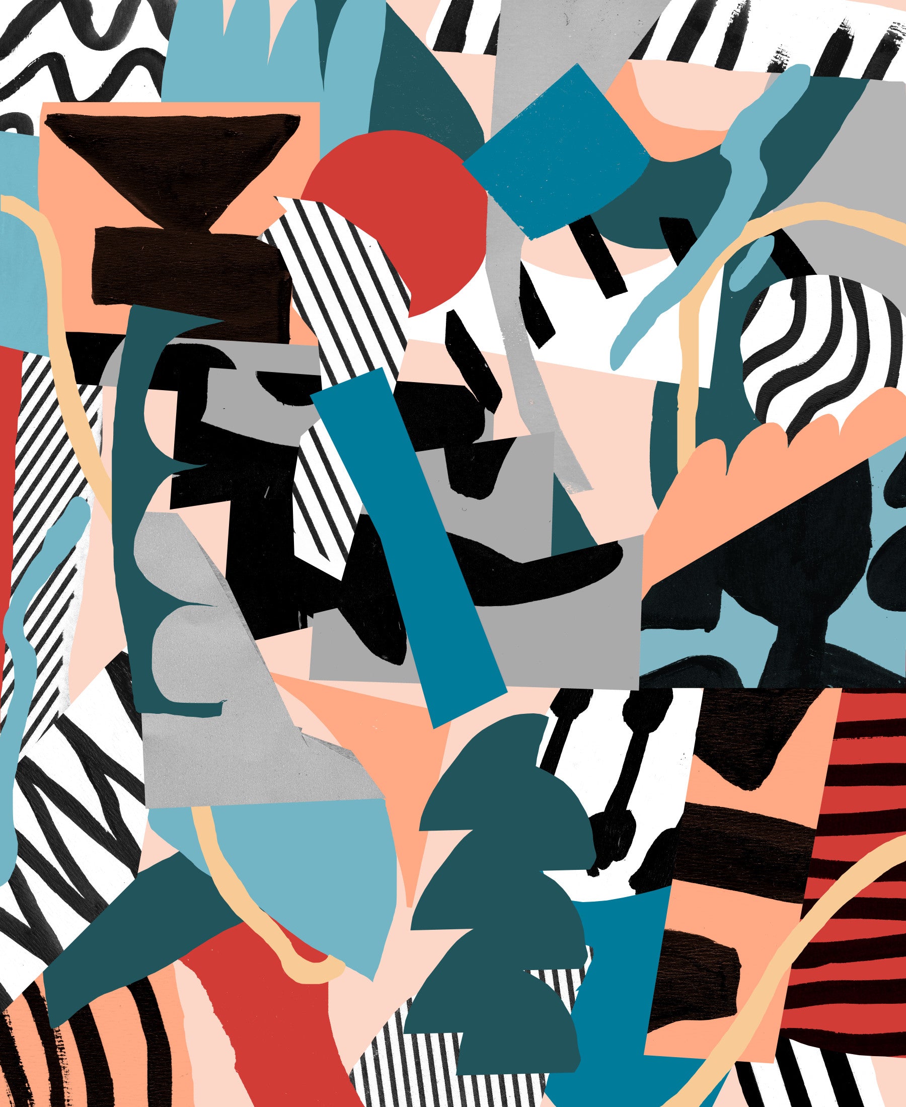 Unleash your inner artist with Freestyle a vibrant and dynamic wallpaper that celebrates the beauty of creative expression. This abstract composition features a playful collision of geometric shapes and organic forms, rendered in a bold palette of teal, coral, red, grey, and classic black and white. Brushstrokes and textured surfaces lend an authentic, hand-painted feel, while contrasting patterns like stripes and solid blocks create a visually stimulating experience. Let the spontaneous energy of "Freestyle" transform your screen into a captivating canvas, inspiring imagination and adding a touch of modern artistry to your digital world. Perfect for those who appreciate unique designs and a dash of unconventional flair, this wallpaper embodies freedom and the joy of breaking away from the ordinary.