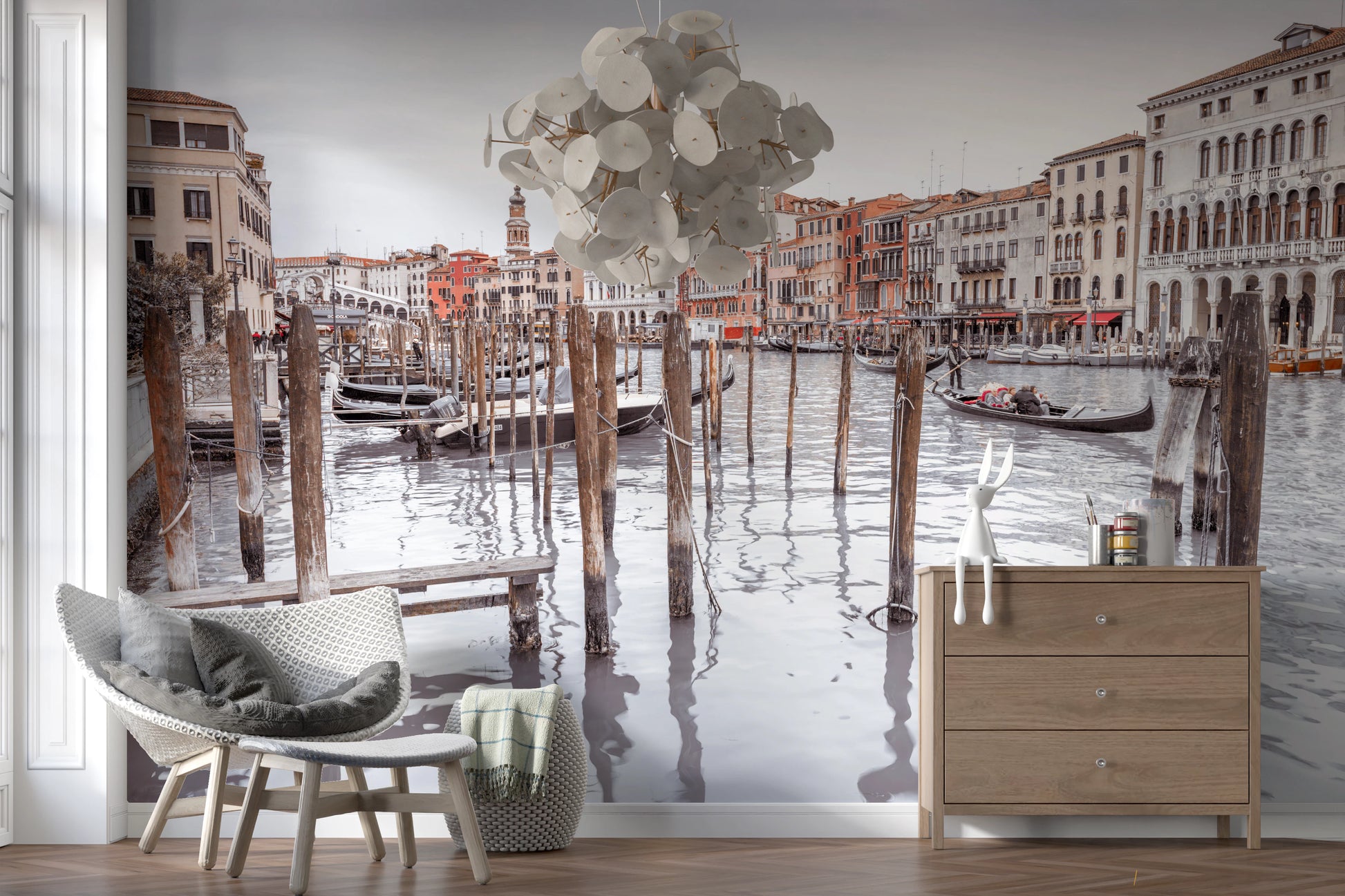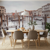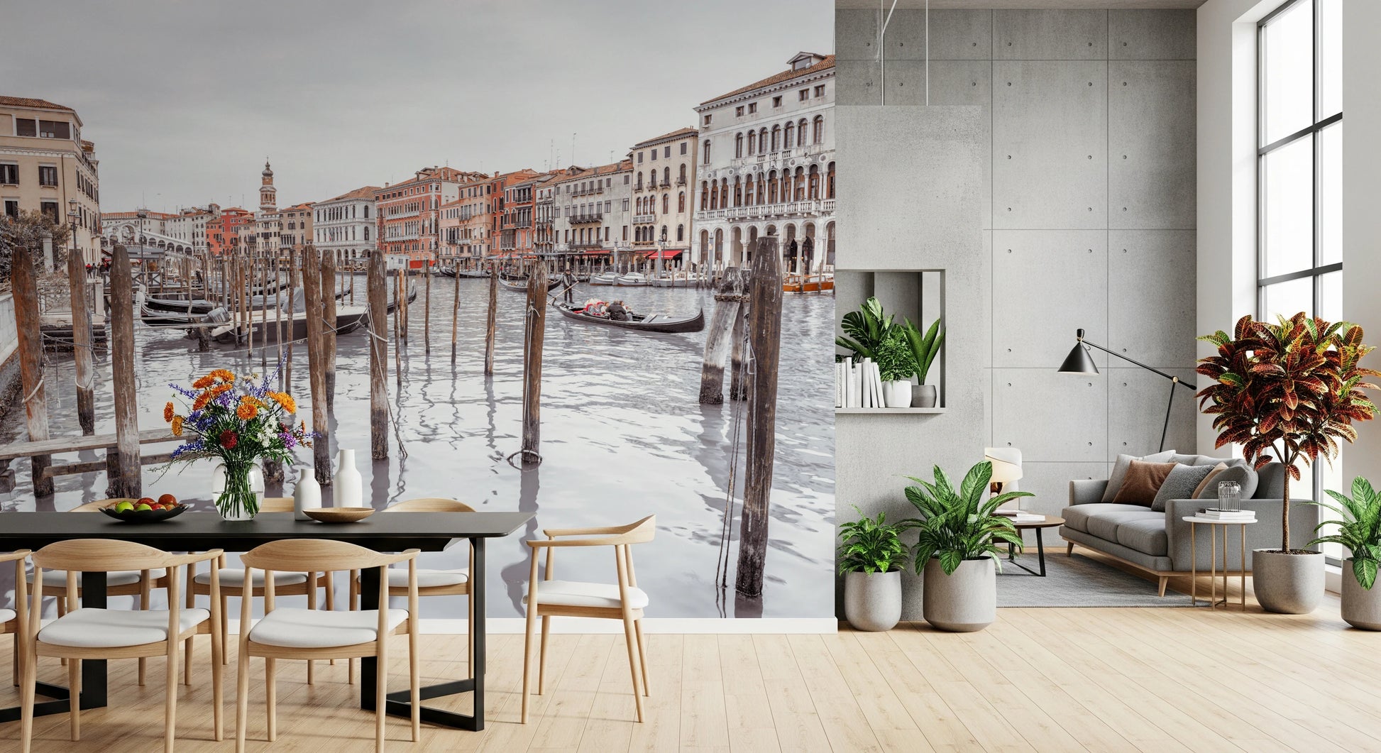 ヴェネツィア・グランデ運河の魅力で、インテリア空間を一新しましょう。この風光明媚な壁紙は、この象徴的な水路のエッセンスを捉えています。クラシックな建物の列、ゴンドラ、そして穏やかな水面を描いたデザインは、奥行きと洗練された雰囲気を醸し出しています。落ち着いたグレー、柔らかな白、そしてレンガ色のアクセントを組み合わせたカラーパレットは、穏やかで魅力的な雰囲気を醸し出しています。リビングルーム、ダイニングルーム、廊下など、あらゆる空間にヨーロッパの魅力を添えるこの壁画は、建築美と穏やかな水面の反射が織りなす、絵画のような美しさで、ご自宅を彩ります。