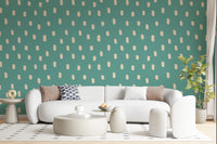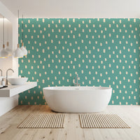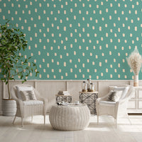 ミッドモッドワイルドフラワードット - ティールベージュの壁紙⁠