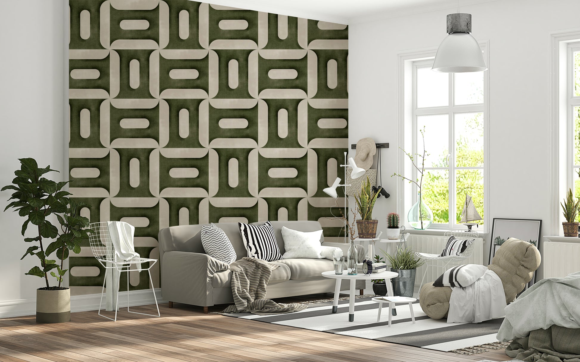 「モダンテクスチャードジオメトリーズ オリーブ」で、洗練された現代的な雰囲気をインテリアに取り入れましょう。落ち着いたオリーブグリーンとソフトベージュのパレットに、丸みを帯びた幾何学模様を巧みに組み合わせたデザインです。テクスチャ効果により奥行きと立体感が生まれ、どんなお部屋にも洗練された雰囲気を添える触感を演出します。繰り返し模様は、構造と流動性の絶妙なバランスを実現し、様々な空間に幅広くお使いいただけます。静謐な空間を演出したい場合でも、シックでモダンなリビングエリアを演出したい場合でも、この壁紙は控えめな高級感を添えます。色とフォルムのユニークな相互作用は、繊細でありながら力強い印象を与え、アクセントウォールとして、あるいはお部屋全体を静謐な美しさで包み込むのに最適です。芸術的な表現と落ち着いた優雅さを兼ね備えた壁紙で、ご自宅を格上げしませんか。