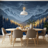 月明かりに照らされた森の静寂の美しさを、この穏やかな冬の風景であなたの空間に彩りを添えましょう。この壁紙は、遠くの山々を背景に、柔らかく輝く月明かりの下に雪をかぶった松の木々を描いています。涼しげな青と白の色合いに、温かみのある金色の光がアクセントとなり、どんなお部屋にも落ち着いた雰囲気を演出します。寝室、リビングルーム、ホームオフィスなど、どんなお部屋にも最適なこのデザインは、静寂の風景で空間を彩ります。この風景壁紙で、冬の夜の安らぎをあなたの家にお迎えください。