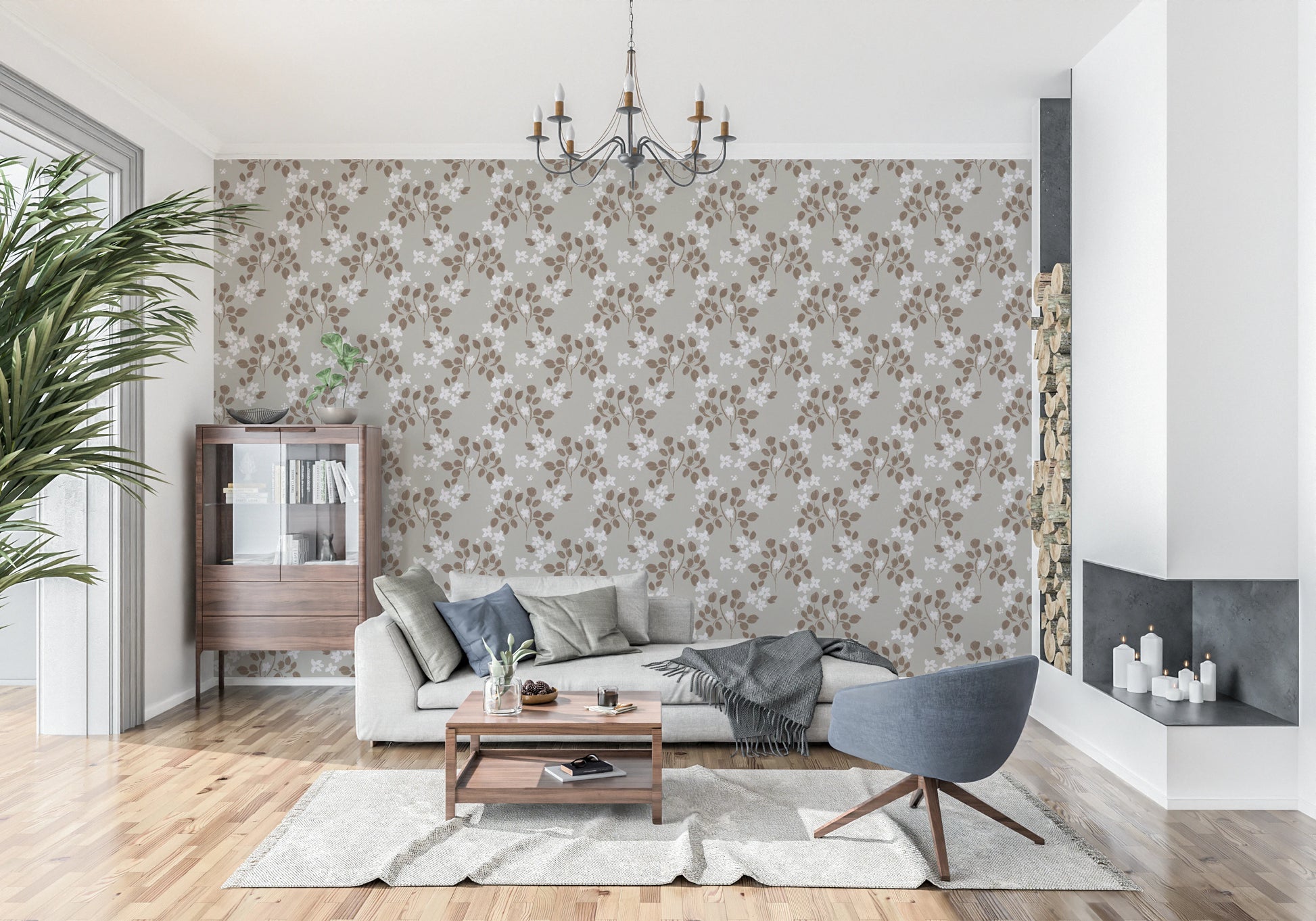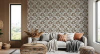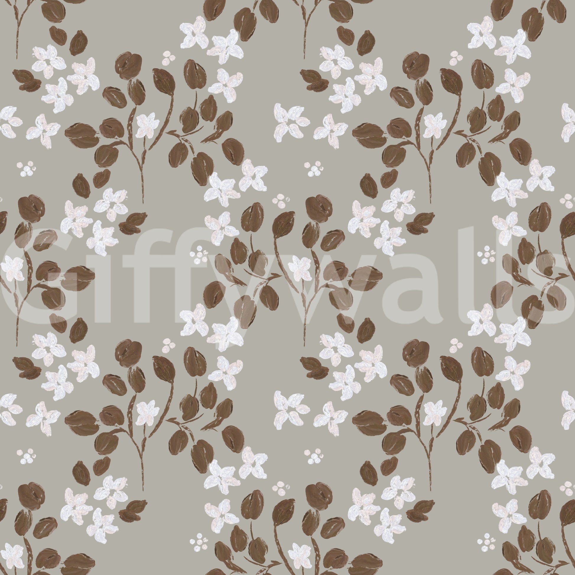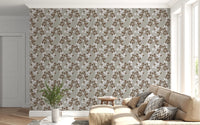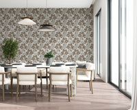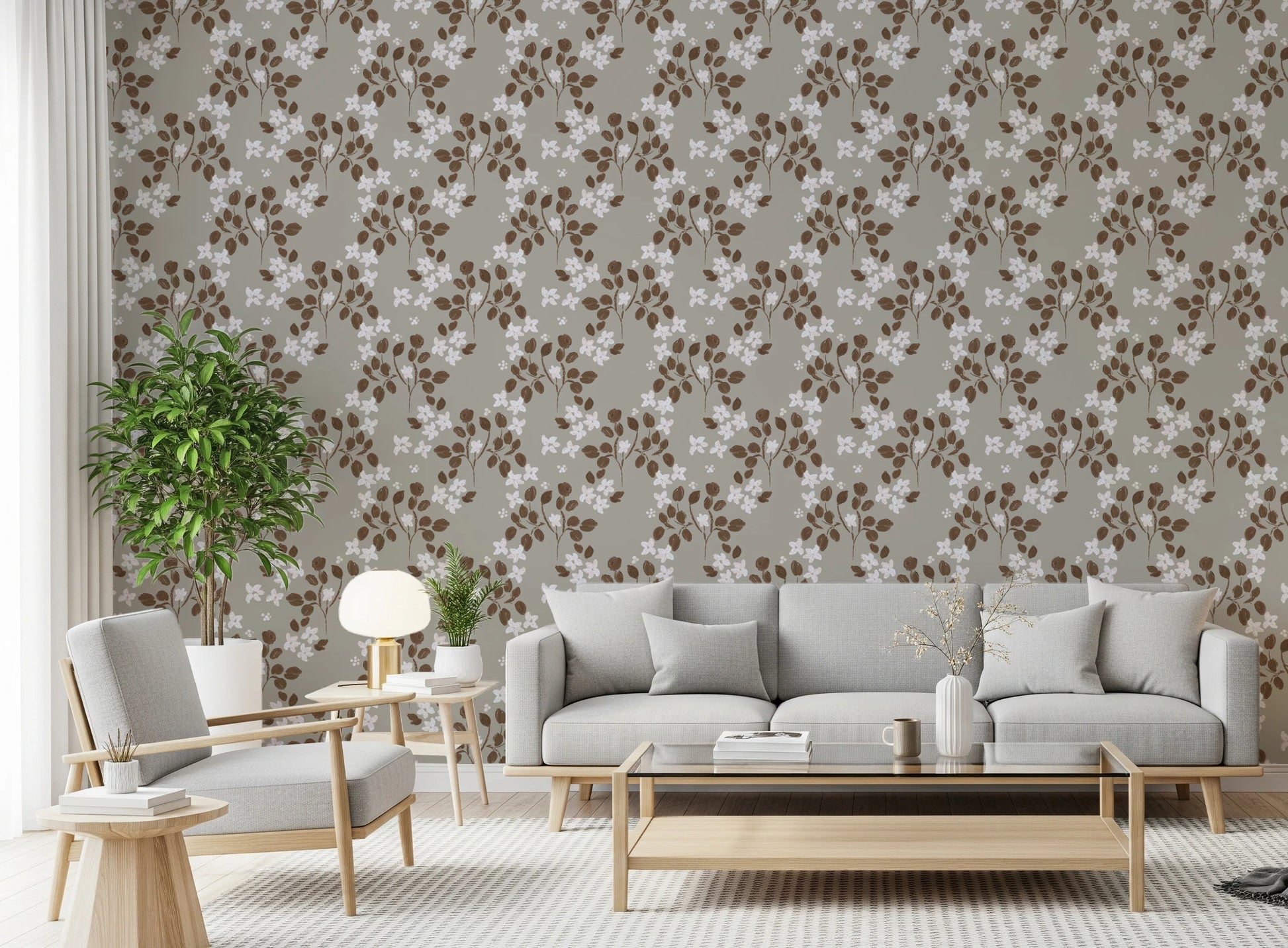 この魅惑的な花柄で、ご自宅にさりげないエレガンスを添えてみませんか。シンプルながらも洗練されたパターンは、落ち着いたニュートラルな背景に、繊細な白い花とココアカラーの葉を際立たせています。寝室、リビングルーム、廊下など、落ち着いた雰囲気を演出するのに最適なこの壁紙は、落ち着きと洗練された雰囲気を醸し出します。手描きの美しい模様が芸術的な魅力を放ち、モダンなインテリアスタイルにも伝統的なインテリアスタイルにもマッチする万能な選択肢です。自然光を取り込み、さりげない視覚的効果を加え、壁を静謐な美しさのキャンバスへと変貌させます。