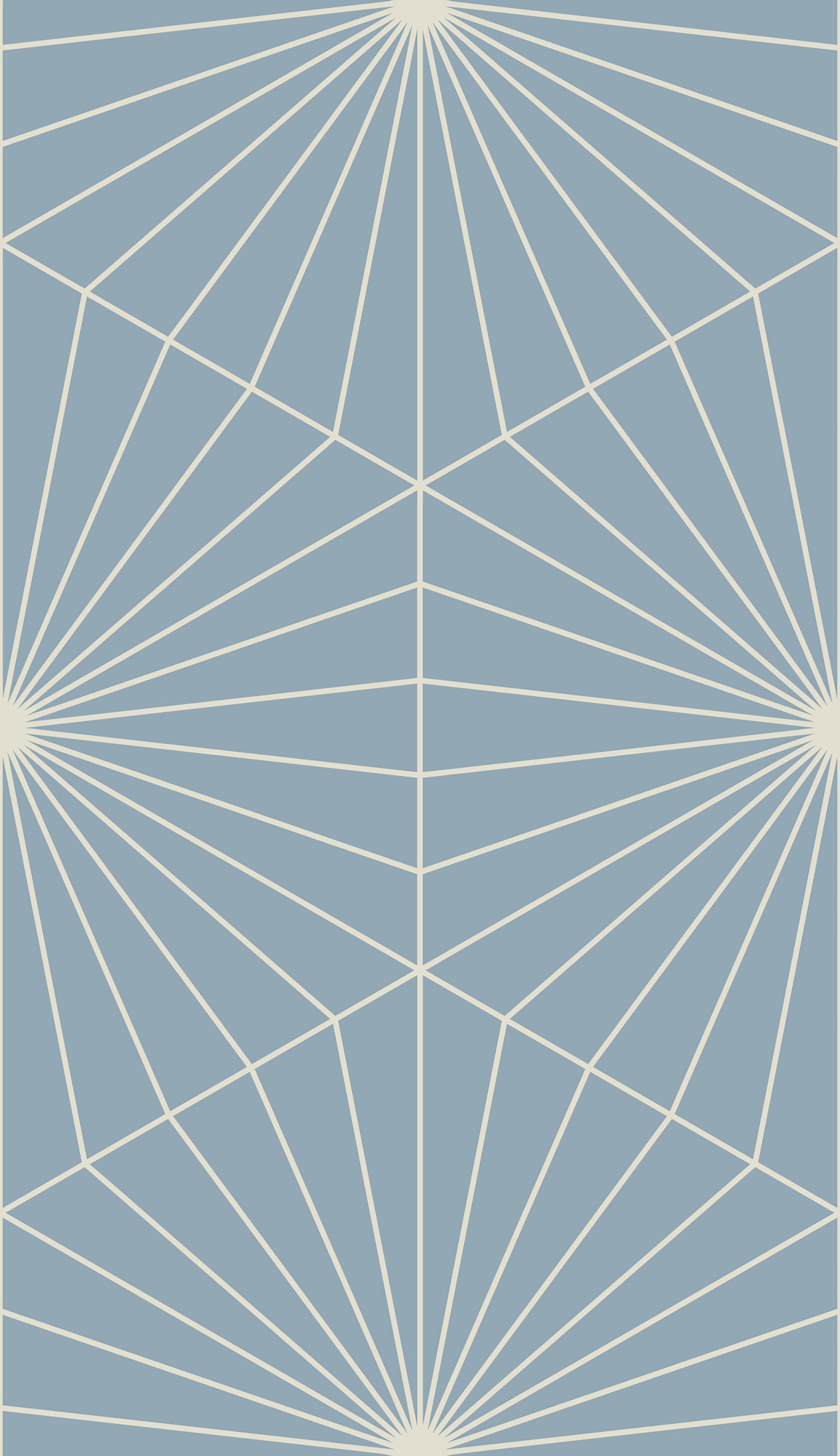 Symmetrical Radiance motif mural in beautiful, airy pastel blue.