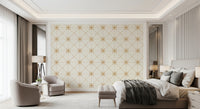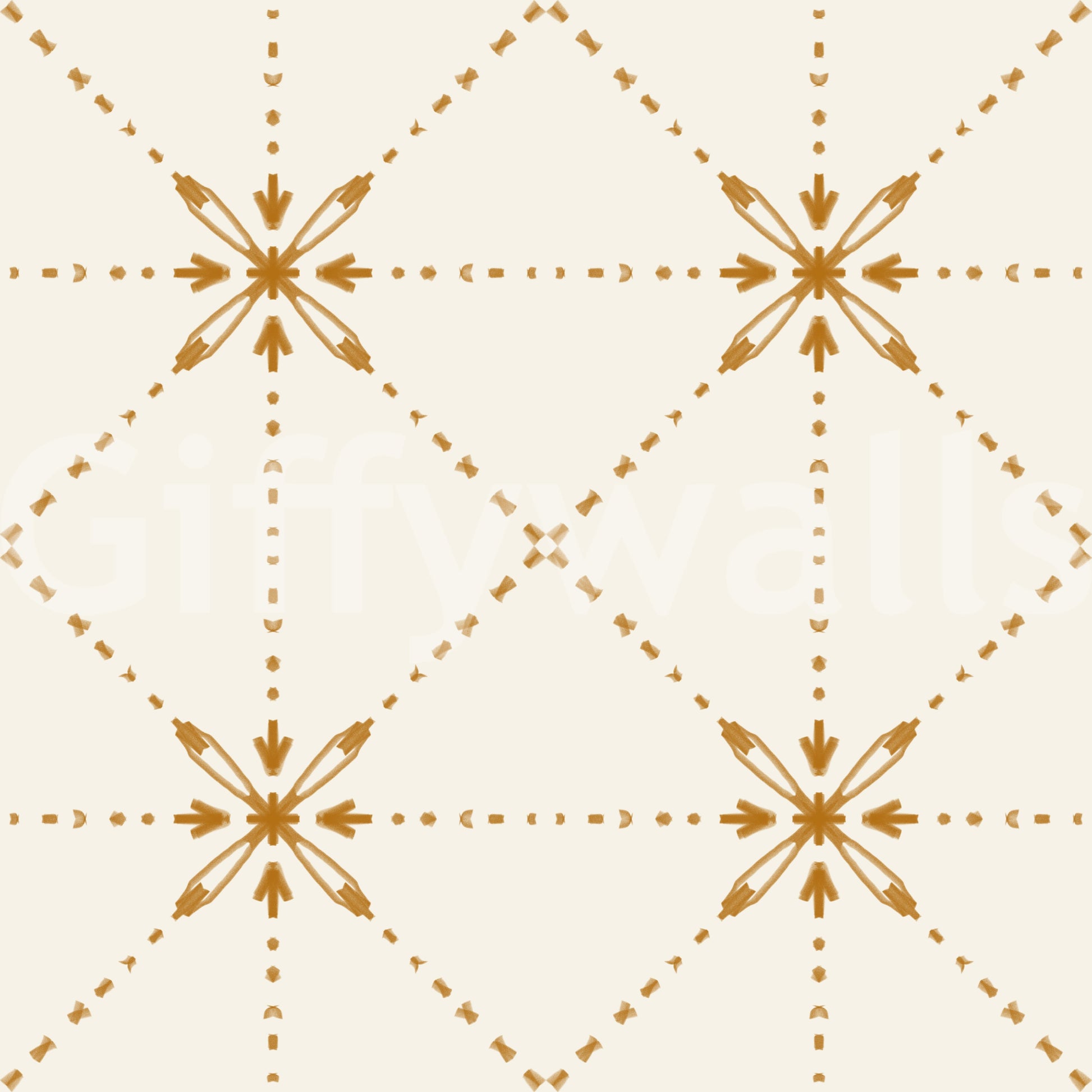 刺し子花格子 - 格子花ステッチゴールド壁紙⁠
