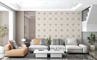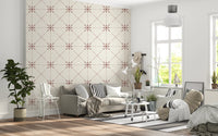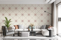 「刺し子花格子 - 格子模様の花模様 テラコッタ」は、素朴な温かみと手作りの芸術性を感じさせます。日本の伝統的な刺繍技法「刺し子」からインスピレーションを得たこのデザインは、落ち着いたテラコッタカラーで繊細な幾何学模様の花模様を格子模様に織り出しています。繊細な質感が奥行きと立体感を与え、どんな空間にも心地よく、触り心地の良い空間を演出します。細部まで丁寧に縫い込まれた模様は、本物らしさと時代を超越した雰囲気を壁面に与えます。繊細でありながら控えめなこのデザインは、ご自宅の壁を世界の工芸品が集う静謐なギャラリーへと変貌させ、ご自宅に穏やかで洗練された雰囲気と有機的な美しさを添えます。