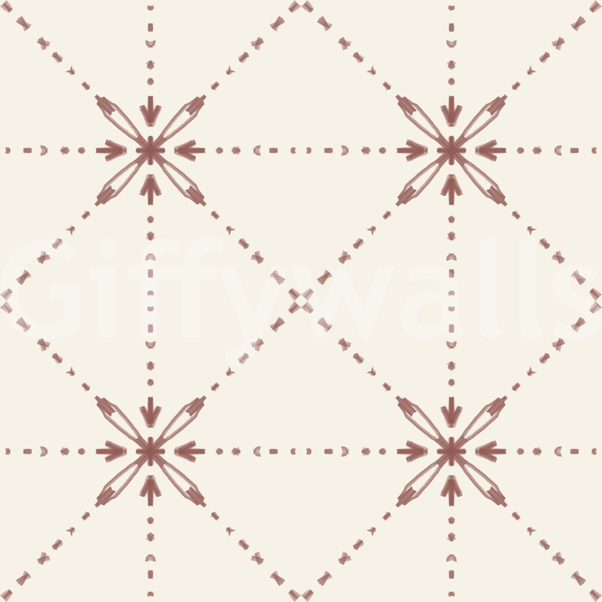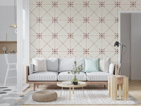 刺し子花格子 - 格子模様の花模様のテラコッタ壁紙⁠