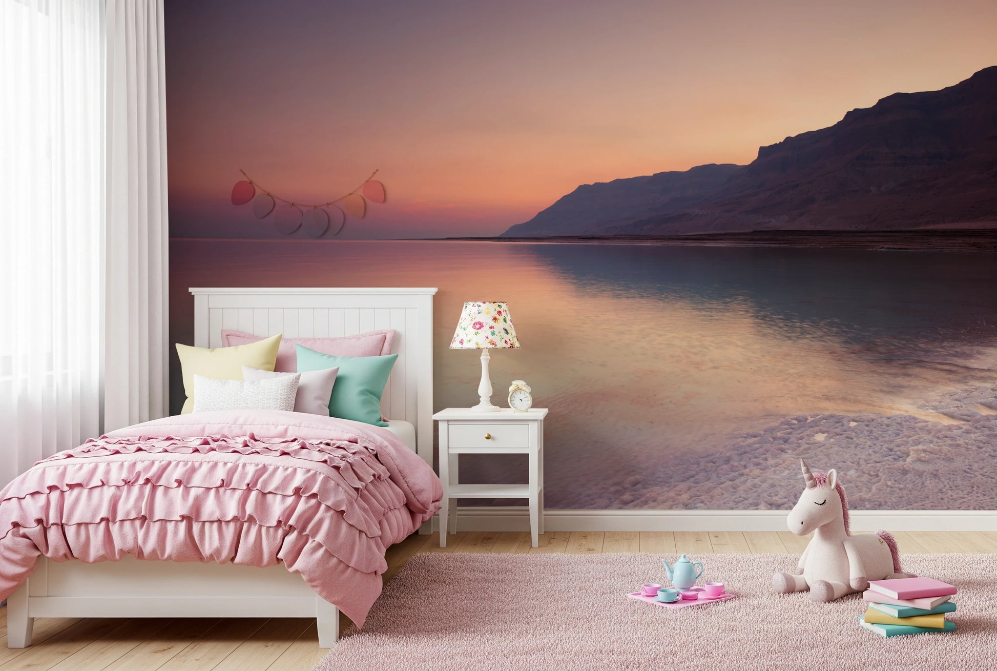 穏やかな夕日の海岸線の壁画
