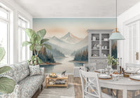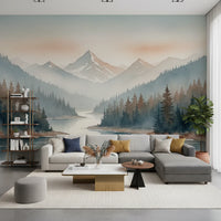 この絵のように美しい壁紙で、ご自宅を静寂の聖域へと変えてみませんか。静寂を想起させるデザインは、山々と森に囲まれた霧深い谷を描いています。水彩画のような美しさが、どんなお部屋にも芸術性と柔らかさを添えます。落ち着いたブルー、グリーン、ブラウンのカラーパレットは、様々なインテリアスタイルに合わせることができます。リビングルーム、ベッドルーム、ホームオフィスなど、どんなお部屋にもお使いいただけます。このデザインは、自然をテーマにしたインテリアやミニマルなインテリアと調和し、空間に広がりを与え、ご自宅に安らぎの空間を演出します。