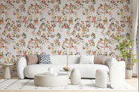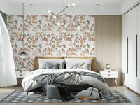 気まぐれな猿が音楽を演奏するヴィンテージエキゾチックな楽しい庭の白い壁紙⁠