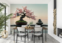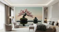 静謐な花と石をモチーフにしたこの壁紙で、ご自宅に静寂を。繊細なピンクの花を咲かせた盆栽と、滑らかな石の山が静かな水面に映るバランスの取れたデザインです。柔らかなパステルカラーのパレットが穏やかな雰囲気を醸し出し、寝室、瞑想スペース、リビングルームなどに最適です。この壁紙はどんなインテリアにも禅の雰囲気を添え、より穏やかで居心地の良い空間を演出します。自然のバランスをリビングスペースに取り入れ、壁を静寂の空間へと変貌させます。