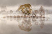 Transform your space with this elegant vista. The design features a misty lake reflecting autumn-hued trees. Its soft and diffused light offers a peaceful, almost dreamlike quality. This wallpaper for walls works beautifully in a bedroom, study, or living area. Let the calming colors and gentle imagery breathe serenity into interiors that seek a touch of sophisticated nature.