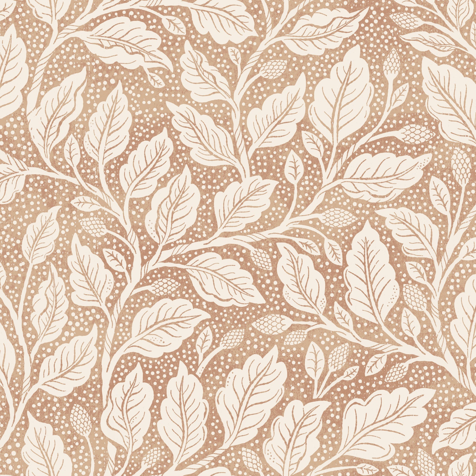 Embrace the subtle elegance of 'Brown Budding Branches,' a digital wallpaper design featuring a captivating interplay of off-white botanical motifs on a textured brown backdrop. Intricate, stylized leaves and budding blossoms create a seamless pattern, reminiscent of vintage botanical illustrations. The delicate off-white branches gracefully intertwine against a speckled, earthy brown ground, evoking a sense of tranquility and natural beauty. Perfect for adding a touch of understated sophistication to any digital device, this wallpaper offers a calming and visually rich experience. The earthy tones and detailed design create a sophisticated yet calming atmosphere.