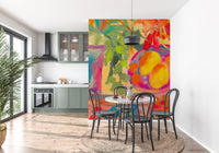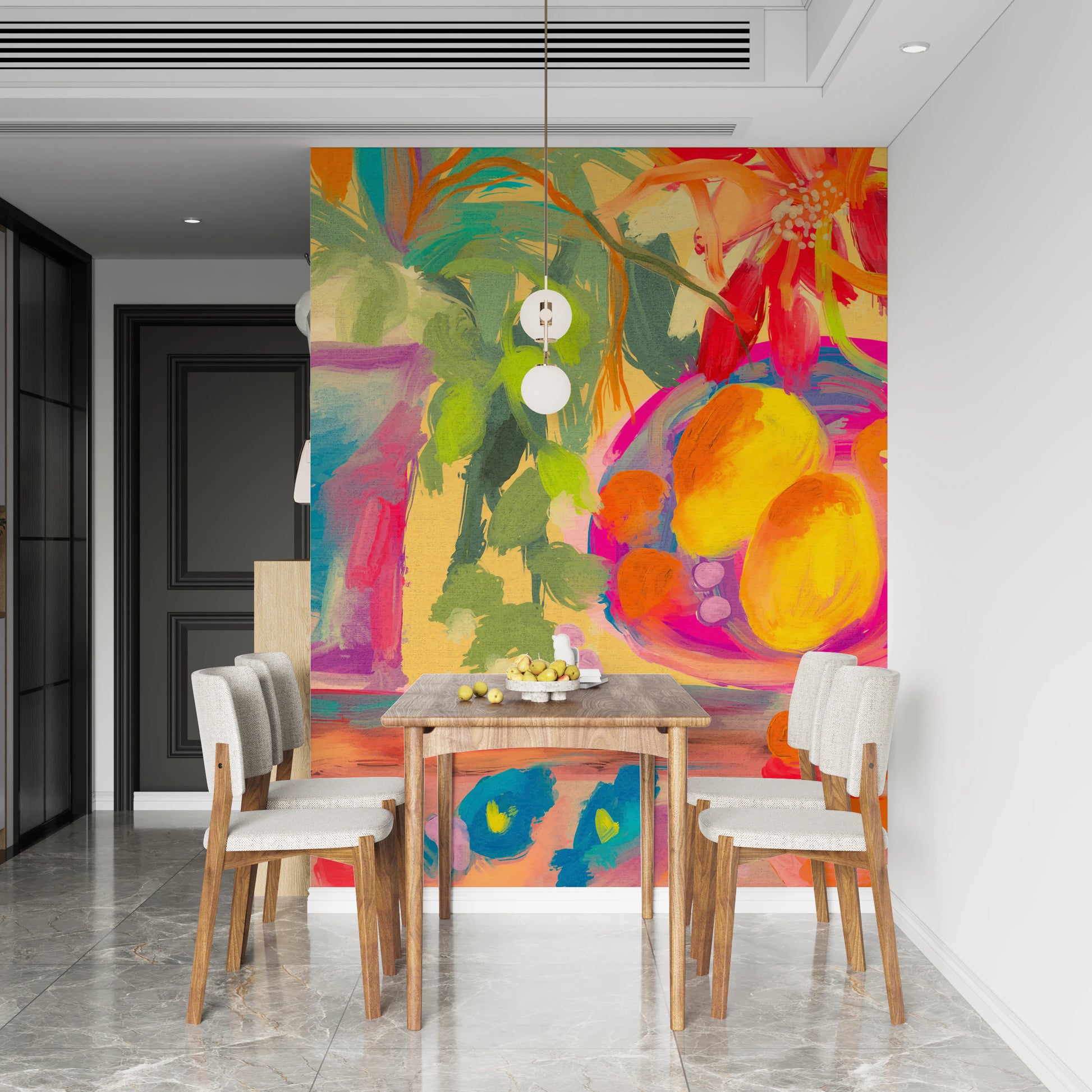 Fargerik abstrakt stilleben med blomster og sitroner veggmaleri