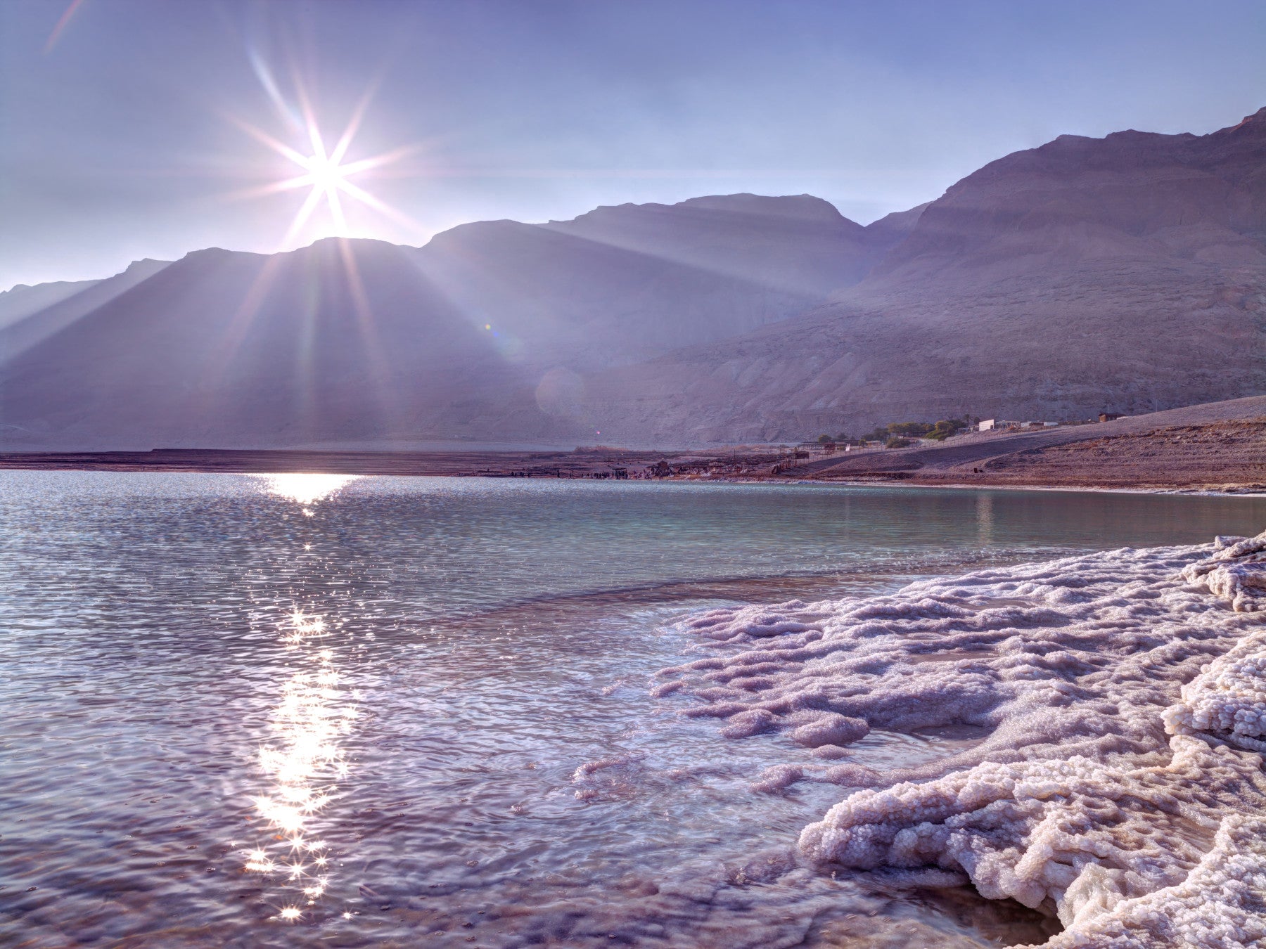 Sunset at the Dead Sea, Israel. Immerse yourself in the ethereal beauty of the Dead Sea at sunset with this captivating wallpaper. The image showcases the otherworldly landscape, dominated by the glistening, mineral-rich waters reflecting the radiant sun. As the sun dips below the horizon, it casts a soft, diffused light across the rugged mountains in the background, creating a sense of serenity and ancient wonder. The unique salt formations lining the shores add a textural element, their crystalline structures shimmering in the fading light. This wallpaper captures the raw, untouched beauty of nature, offering a moment of tranquility and a reminder of the Earth's extraordinary wonders. Let the calming hues and stunning vista transform your digital space into a sanctuary of peace and inspiration.