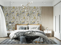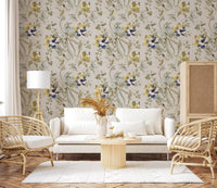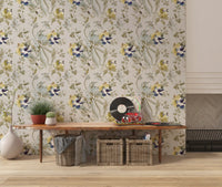 Smaragdgrønn fugl- og blomster-tapet