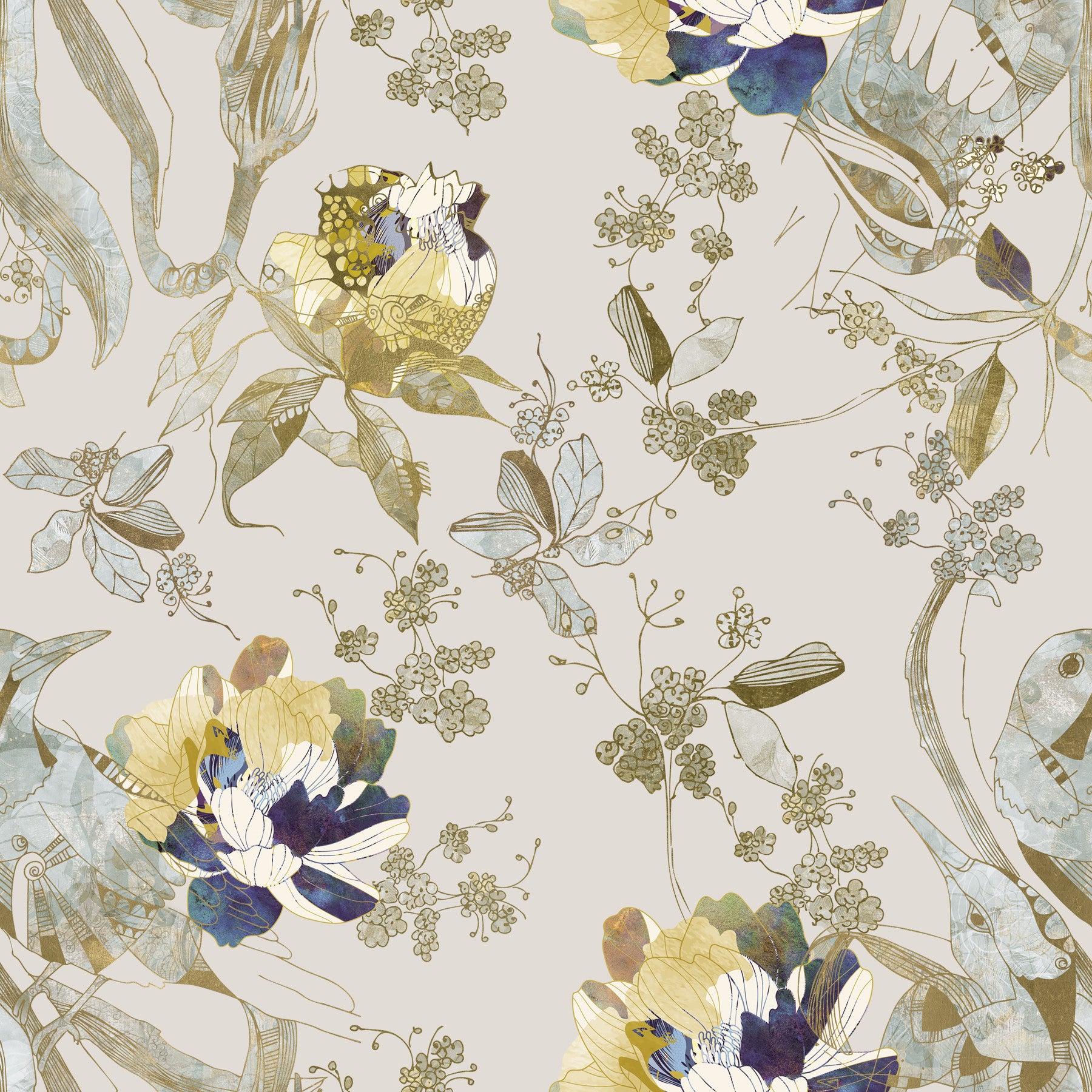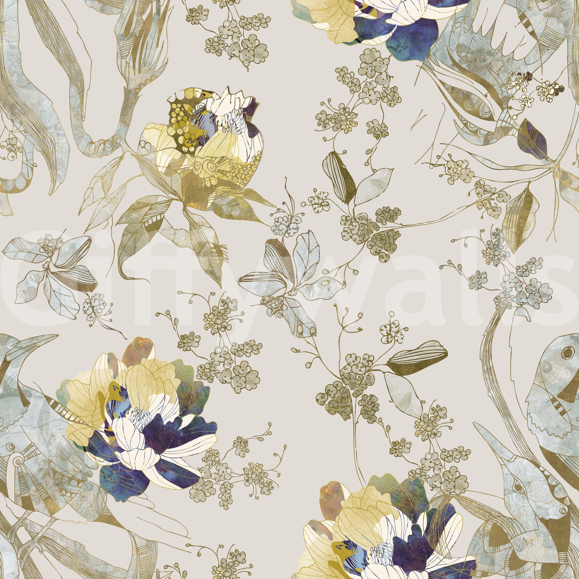Fordyp rommet ditt i den rolige elegansen til vårt Emerald Green Bird & Floral veggkunst. Dette utsøkte designet viser grasiøse, stiliserte fugler, subtilt pyntet med glitrende gyldne aksenter og delikate hint av dempet teal og frodige grønne nyanser i deres teksturerte former. De smelter sømløst sammen med de frodige botaniske elementene, og skaper en fengslende fortelling. Store, blomstrende blomster bryter frem i en symfoni av kremhvitt, myke gule toner og dype indigo nyanser, hver kronblad omrisset med en raffinert metallisk glans. Spredt rundt er delikate kvister med bær og organisk løvverk, som skaper en harmonisk dans over lerretet. Det sofistikerte samspillet mellom intrikate linjearbeid og myke, akvarellignende teksturer gir denne veggdekorasjonen en luksuriøs, kunstnerisk følelse. Mot en beroligende nøytral bakgrunn fremkaller det en fredelig, overdådig hagescene, perfekt for å tilføre et snev av tidløs skjønnhet og naturlig prakt til ethvert rom. Det er et kunstnerisk uttrykk som inviterer fred og sofistikert sjarm inn i hjemmet ditt.