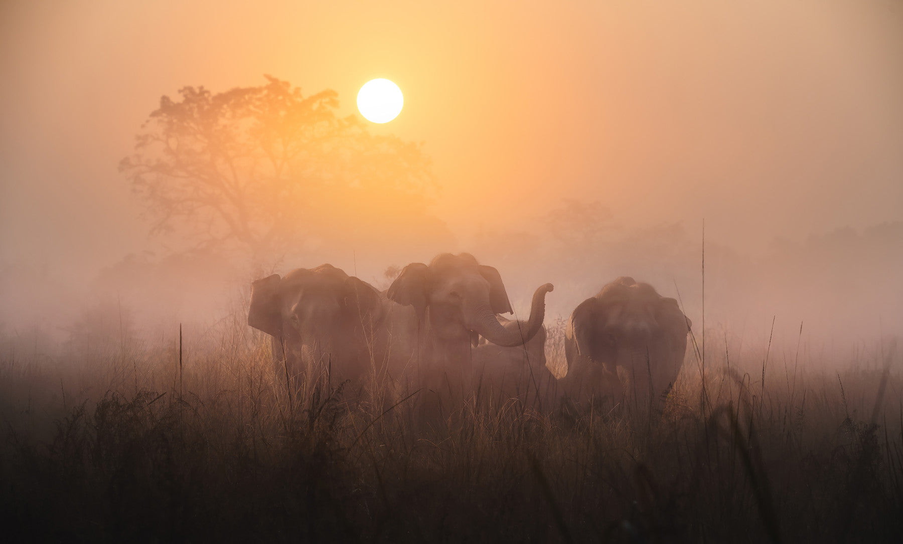 Golden Dawn Elephants Wall Mural -2425886