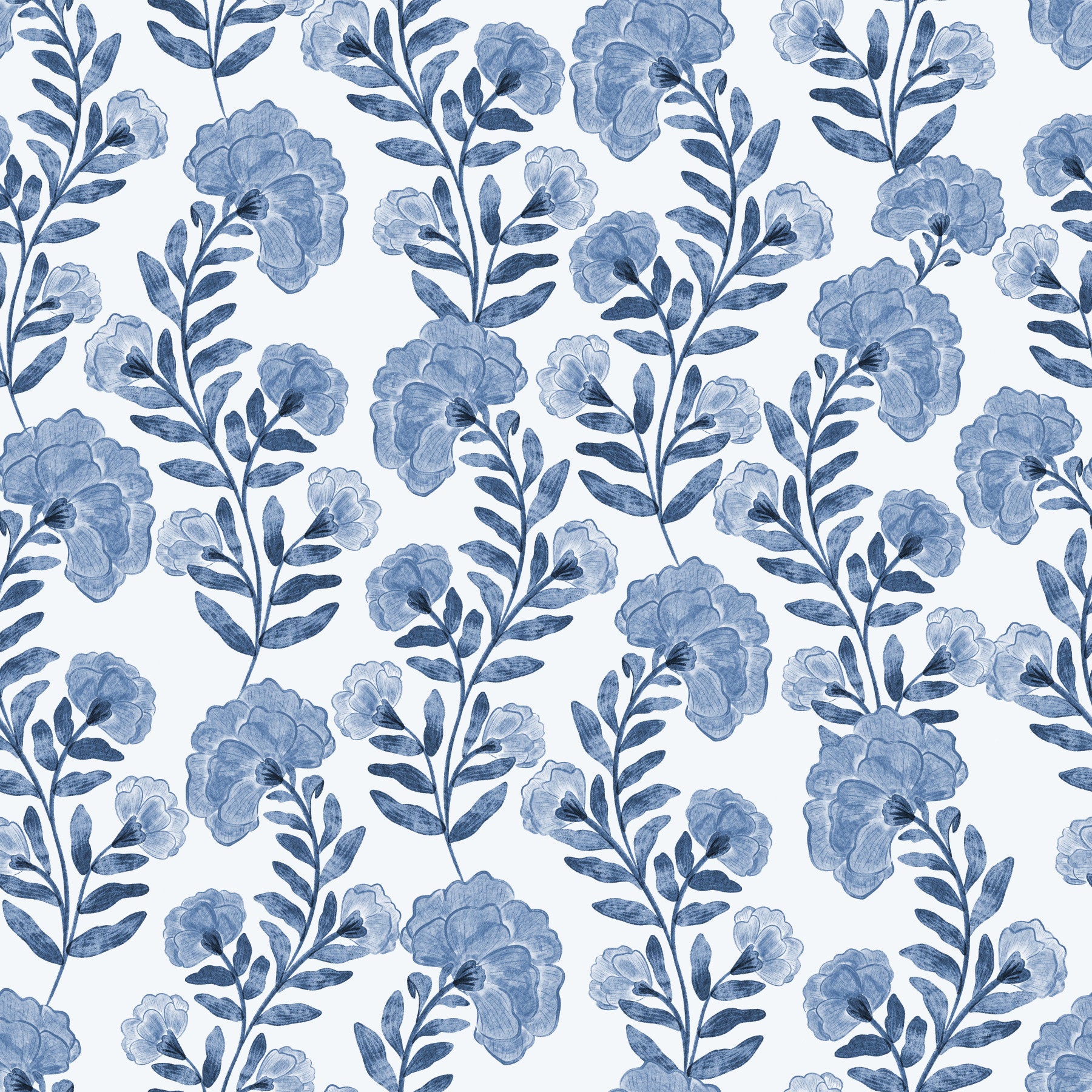Ta roen i en botanisk hage hjem til deg med dette rolige tapetet for vegger. Den indigo-blå blomsterdesignen skaper en fredelig stemning. Mønsteret fungerer underverker i soverom, stuer eller ganger. La dette tapetet forbedre plassen din, og gjøre den til et rolig tilfluktssted. Det enkle, men elegante designet kompletterer både moderne og klassisk interiør.