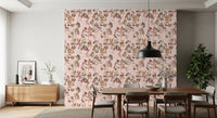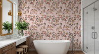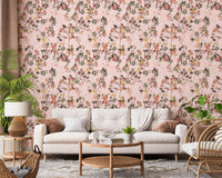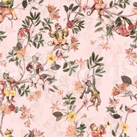 Snille apekatter som spiller musikk, vintage eksotisk morsom hage rosa tapet⁠