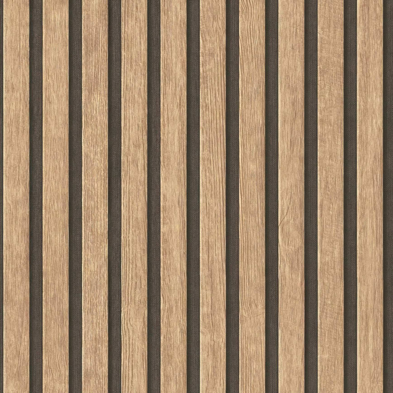 Behang met gevarieerde houten strepen in een horizontale lay-out.