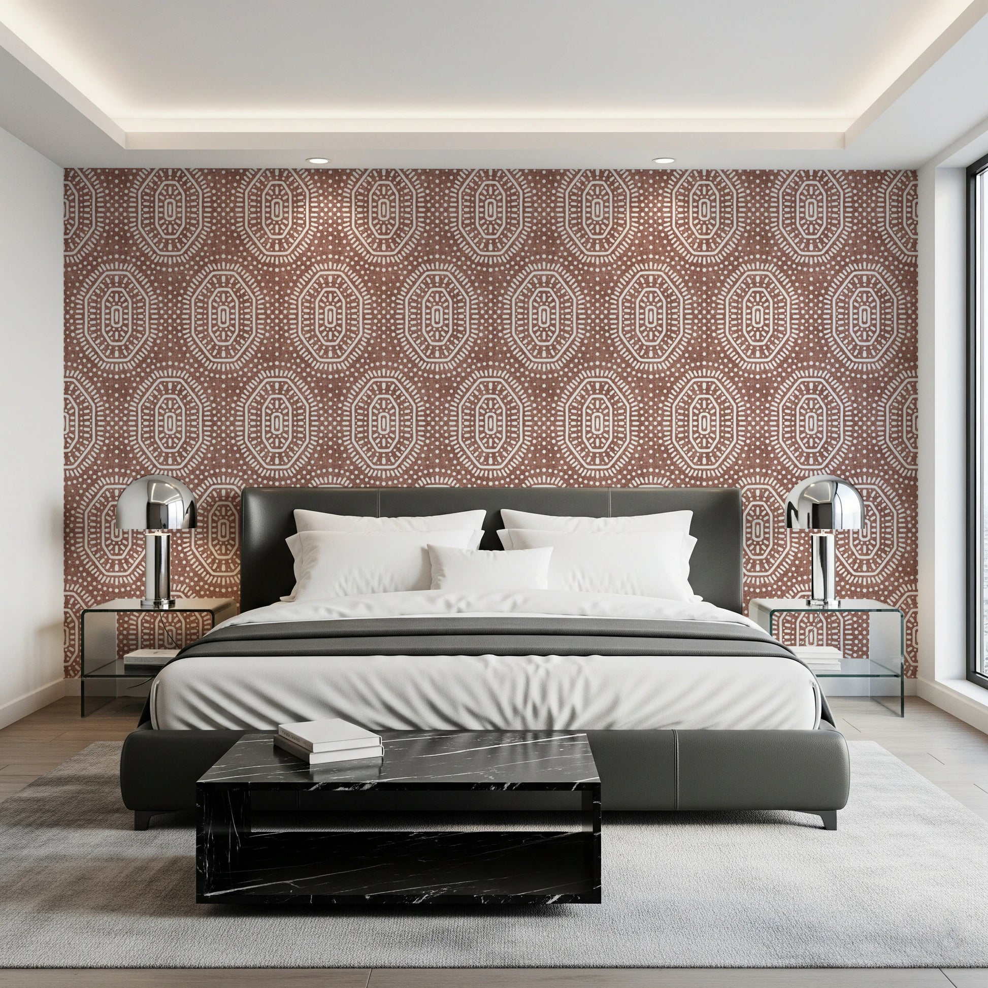 Boho achthoeken gehaakt grunge terracotta rood behang⁠