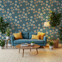 Omarm de rustgevende charme van Scandinavisch design met deze betoverende wandbekleding. "Cozy Scandi Folk Dot Floral Nordic Blue Grey - Craft Circle" roept een gevoel van handgemaakte kunst en Noordse sereniteit op. Tegen een achtergrond van kalmerend blauwgrijs met een geweven textielstructuur vormen handgemaakte cirkels een visueel aantrekkelijk, warm patroon. Sommige cirkels hebben eenvoudige, strakke lijnen en een levendig oranje midden, terwijl andere folkloristische details met stippen aan de buitenrand vertonen, die allemaal bijdragen aan de unieke, ambachtelijke uitstraling van het ontwerp. Breng een vleugje Scandinavisch minimalisme en handgemaakte warmte in uw ruimte met deze uitnodigende wanddecoratie die zowel stijlvol als heerlijk rustgevend is en een perfecte mix biedt van eenvoud en visuele aantrekkingskracht.