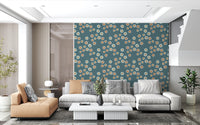 Gezellig Scandinavisch Folk Stippen Bloemen Noordse Blauwgrijs - Craft Circle Behang