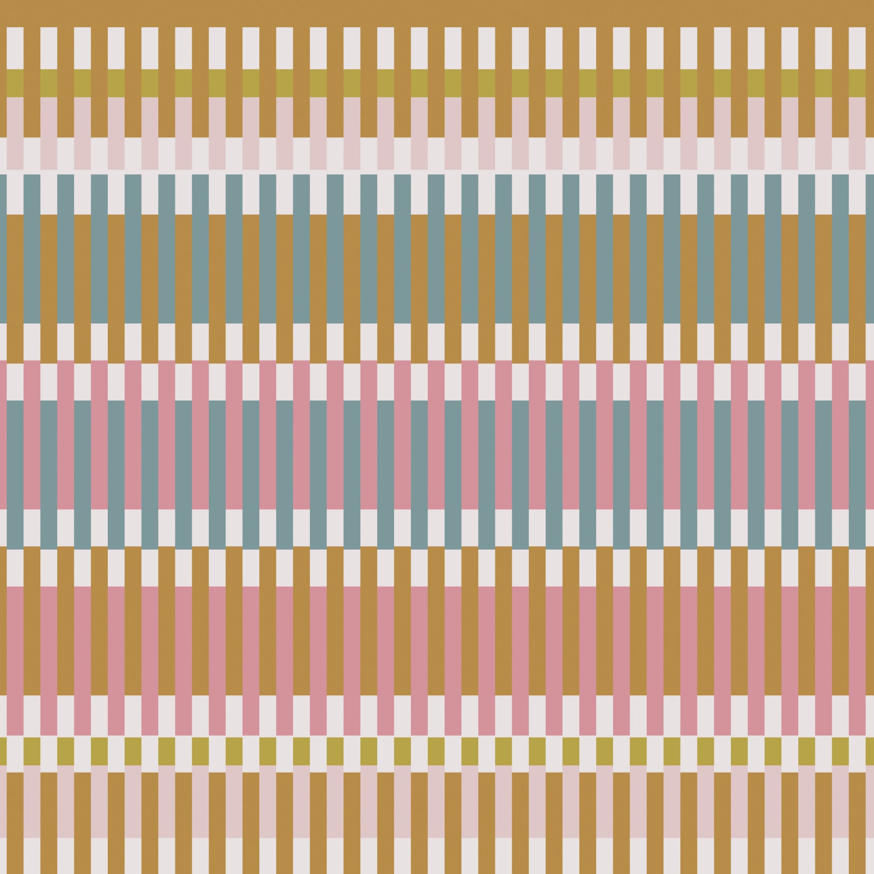 Dit betoverende behang voor muren transformeert elke kamer met zijn unieke geometrische blokpatroon en creëert een moderne maar toch nostalgische sfeer. In elkaar grijpende rechthoekige vormen in gedempt goud, stoffig roze en zacht teal, geaccentueerd met warm beige en subtiel olijfgroen, vormen samen een harmonieus ontwerp. Dit stijlvolle patroon brengt verfijnde visuele interesse en een vrolijke, gezellige sfeer in interieurruimtes. Het past perfect bij woonkamers, slaapkamers, eetgedeeltes en zelfs een levendige kinderkamer. De strakke lijnen en het aardse, pastelpalet van het ontwerp versterken diverse interieurstijlen en bieden een verfrissende en uitnodigende achtergrond die zowel eigentijds als tijdloos aanvoelt. Werk je huis eenvoudig bij met dit boeiende ontwerp.