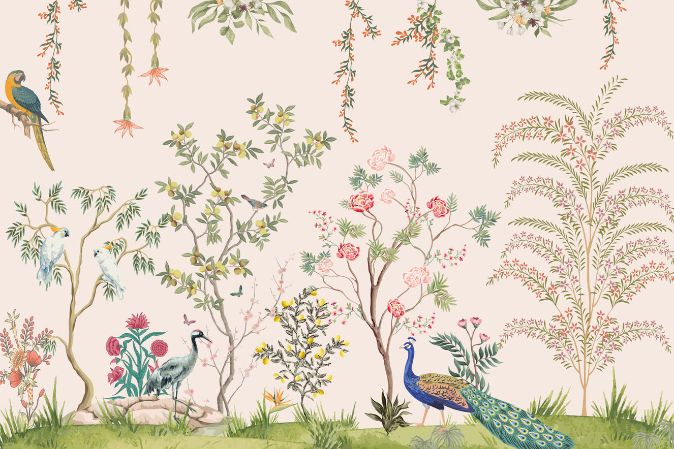 The charm comes from the hand-painted effect wallpaper style, which perfectly captures the delicate and flowing textures of an artist's brush. This approach ensures each design has a unique and sophisticated visual appeal.