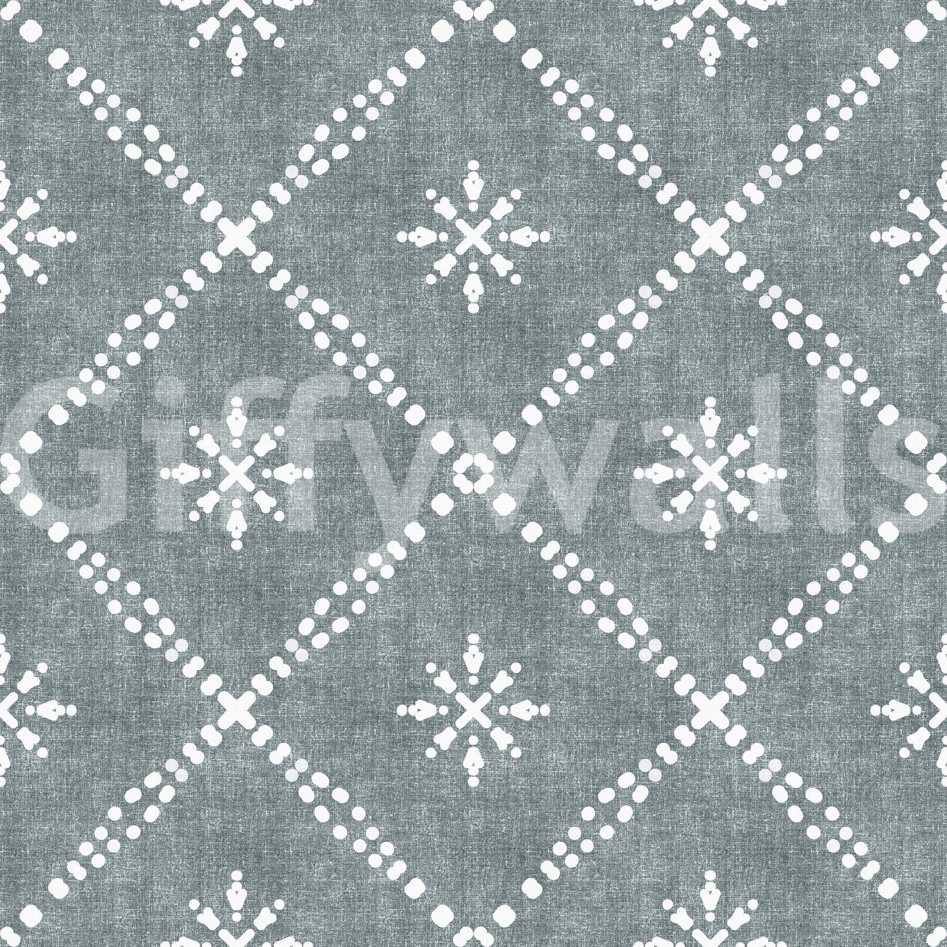 Tapeta w stylu boho w kropki i kratkę w kolorze grunge, uspokajająca, niebieska