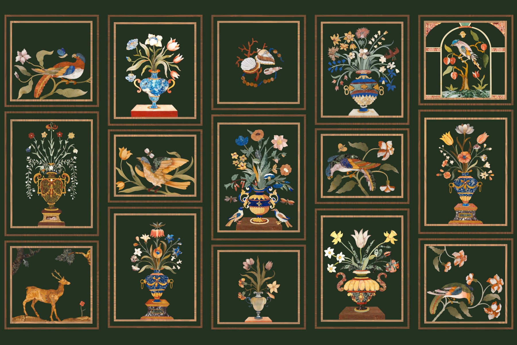 Floral & Fauna Panels Wall Mural