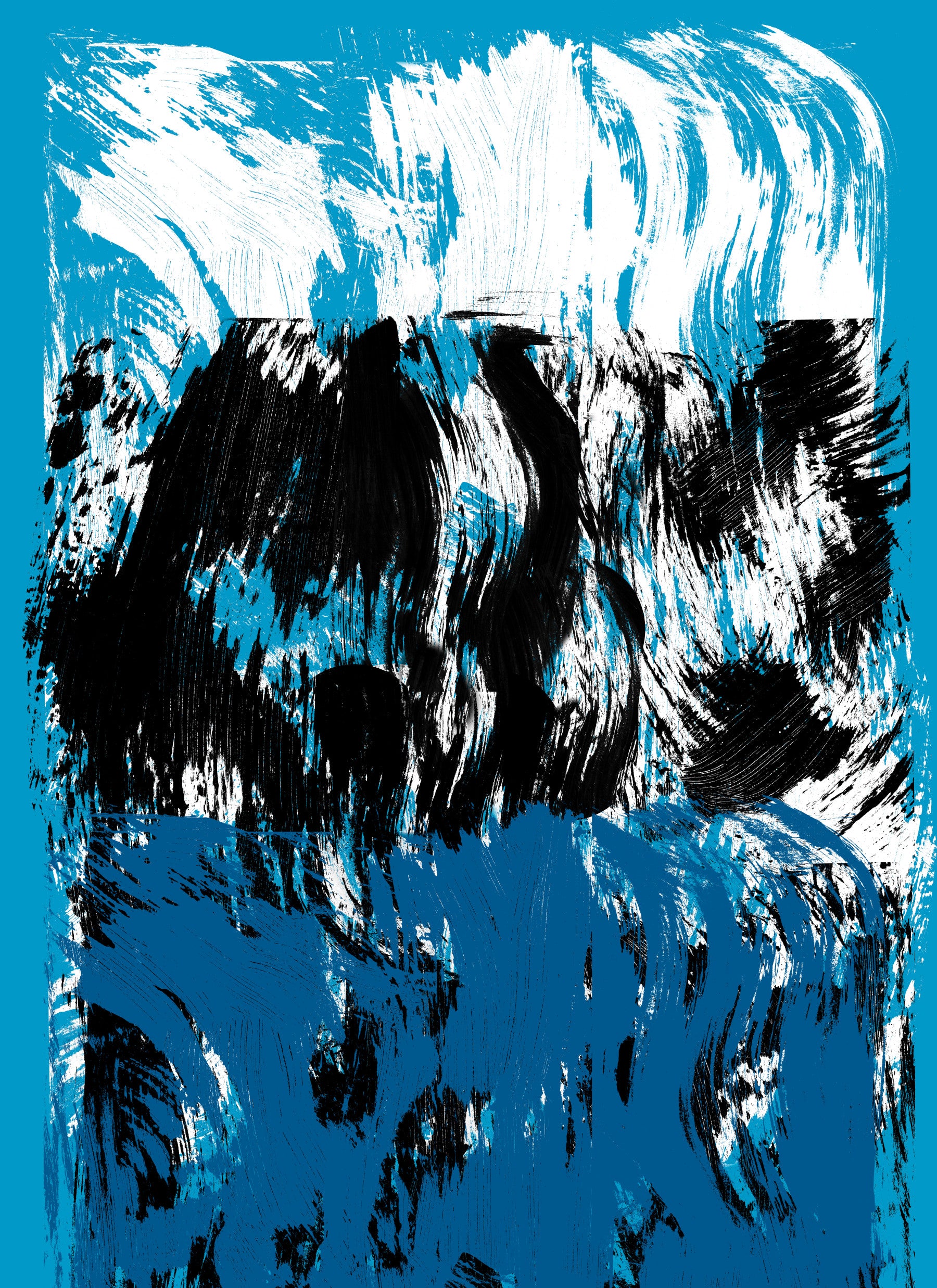 Energetic blue and black paint textures forming an abstract high tide wallpaper scene.