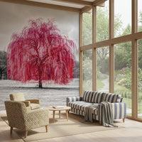 Żywy różowy mural z wierzbą