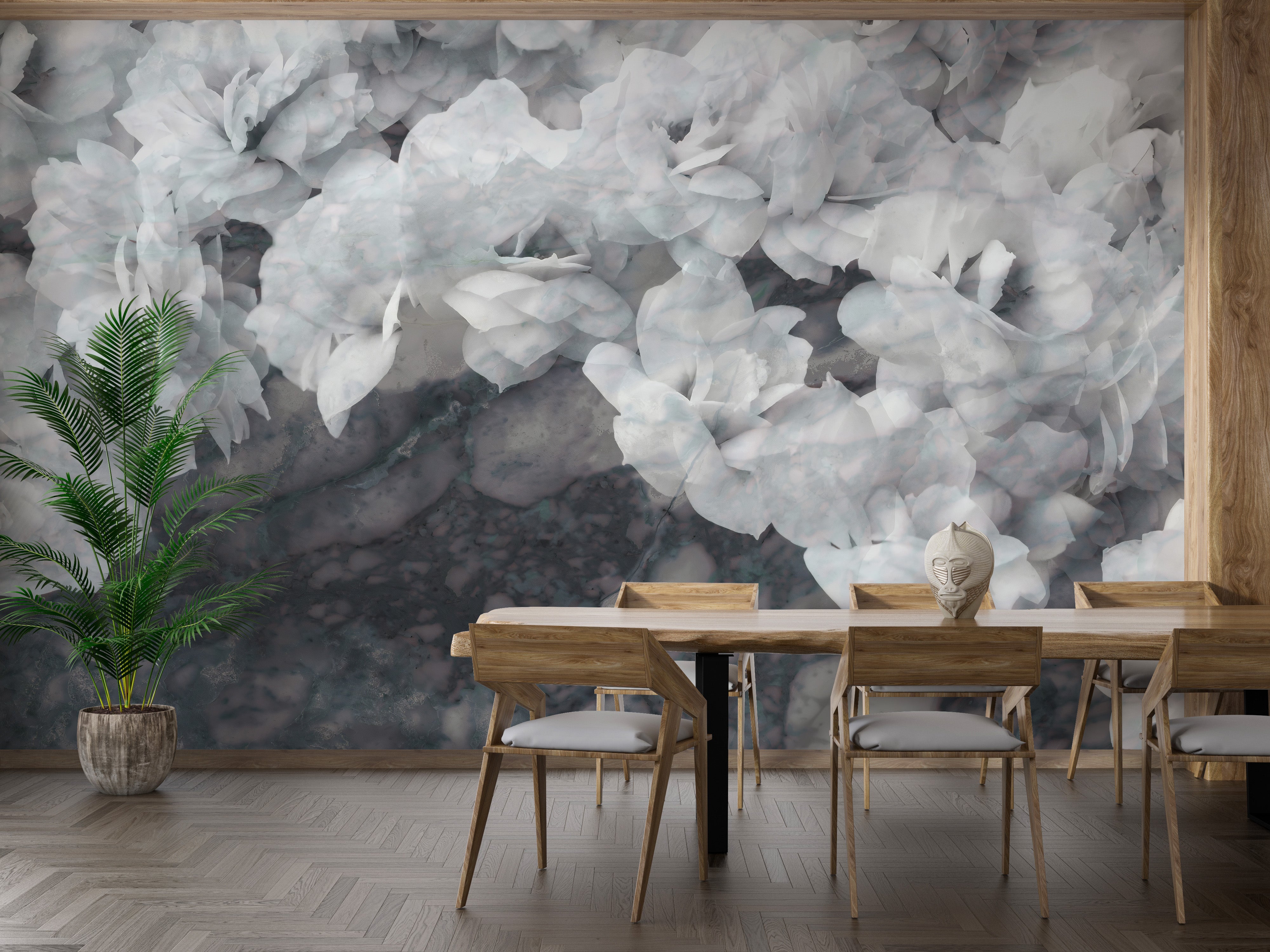 From the gentle gradient of pristine white to the soft embrace of the darkened canvas, this mural wallpaper strikes the perfect chord for a sophisticated ambiance. Designed for versatility, it's an ideal enhancement for various spaces, including offices, bedrooms, and living areas, bringing a sense of calm sophistication wherever it graces.
