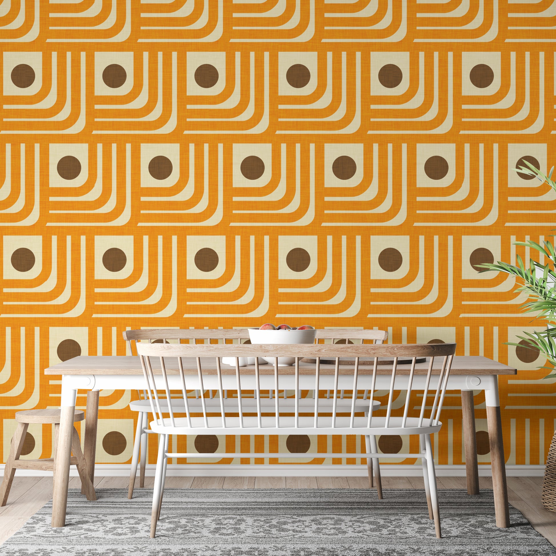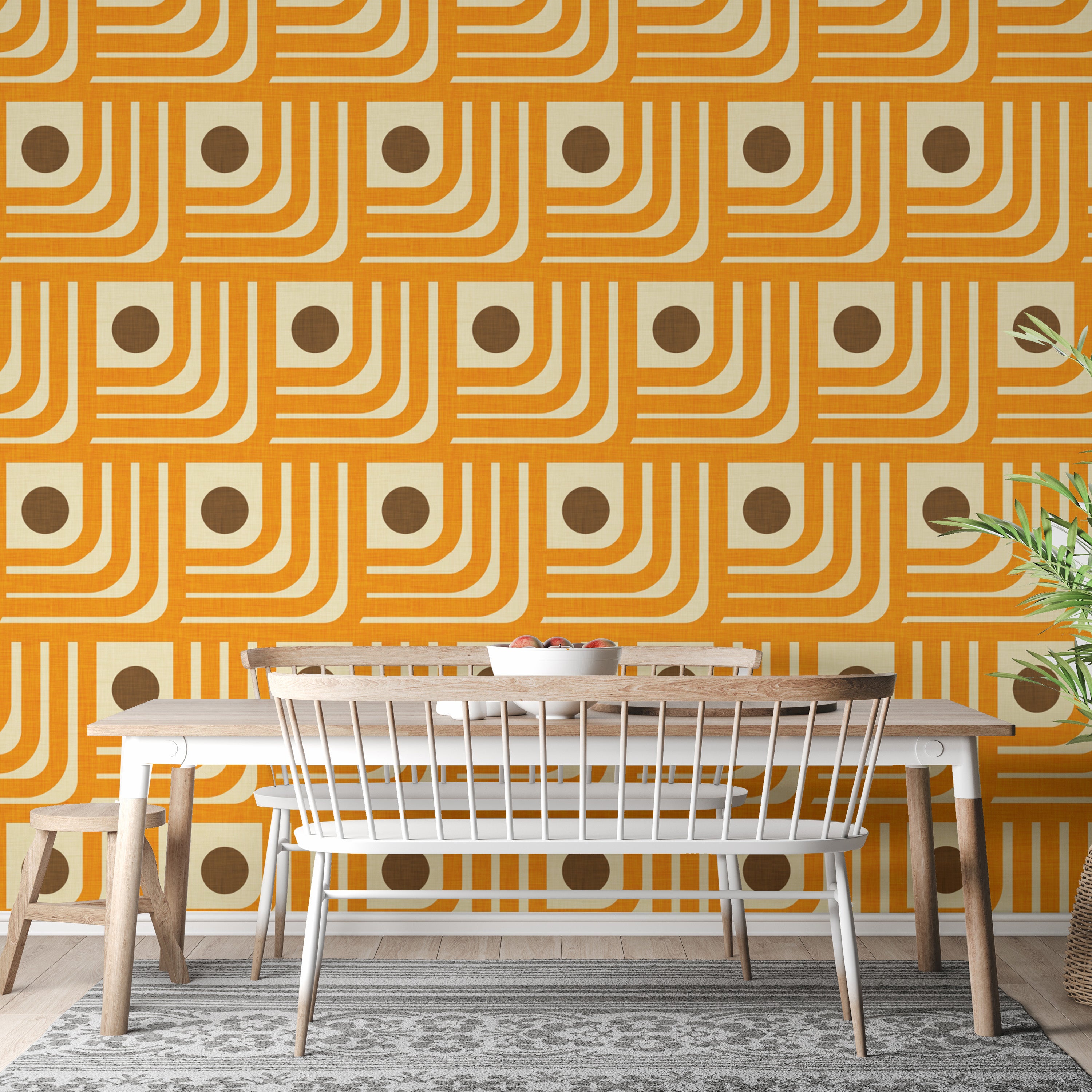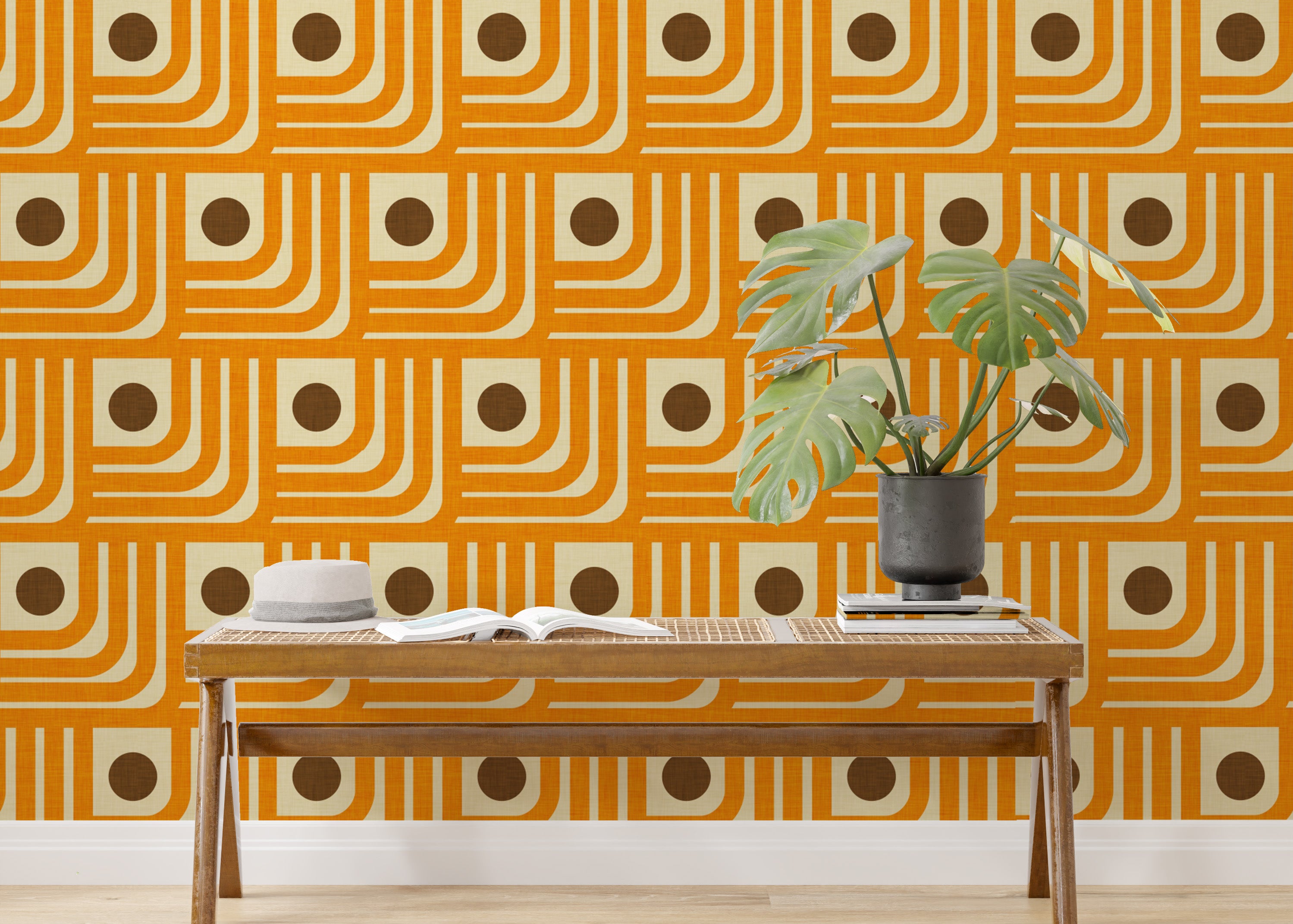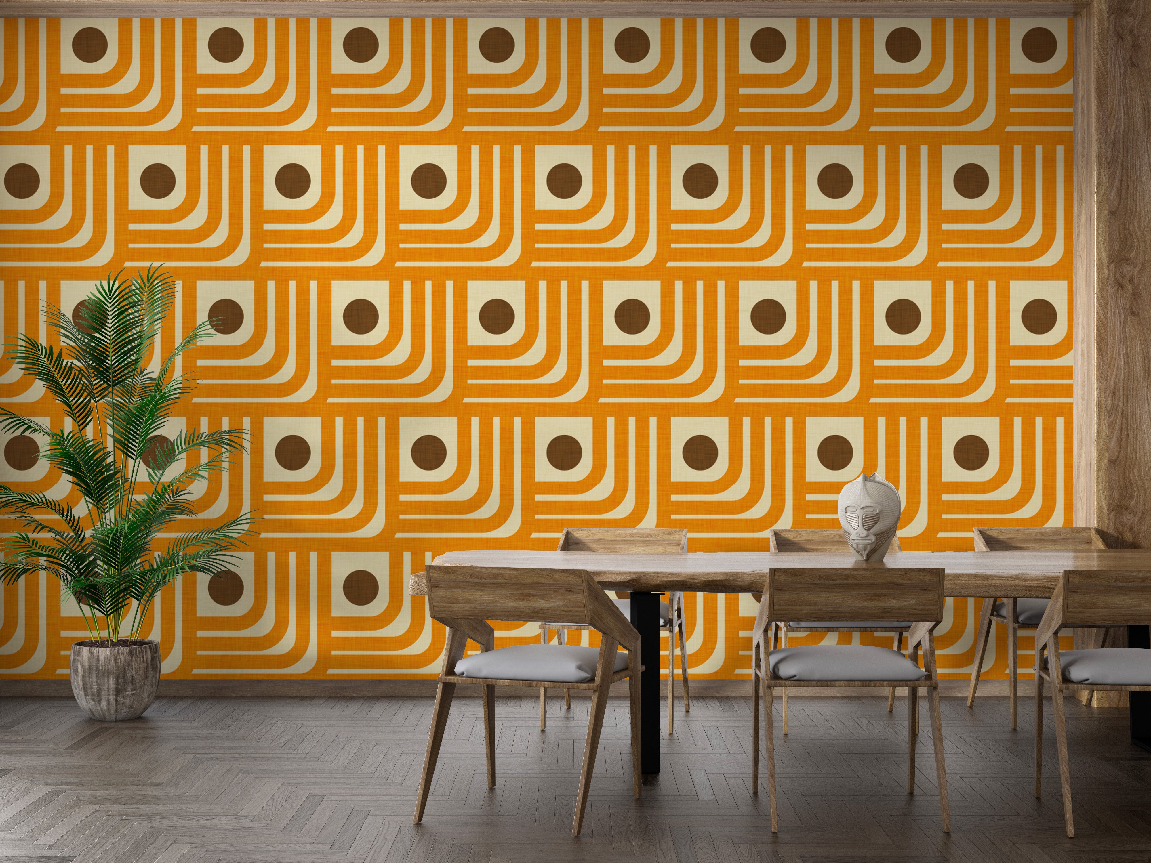 Vintage-inspired 70s orange geometric wallpaper