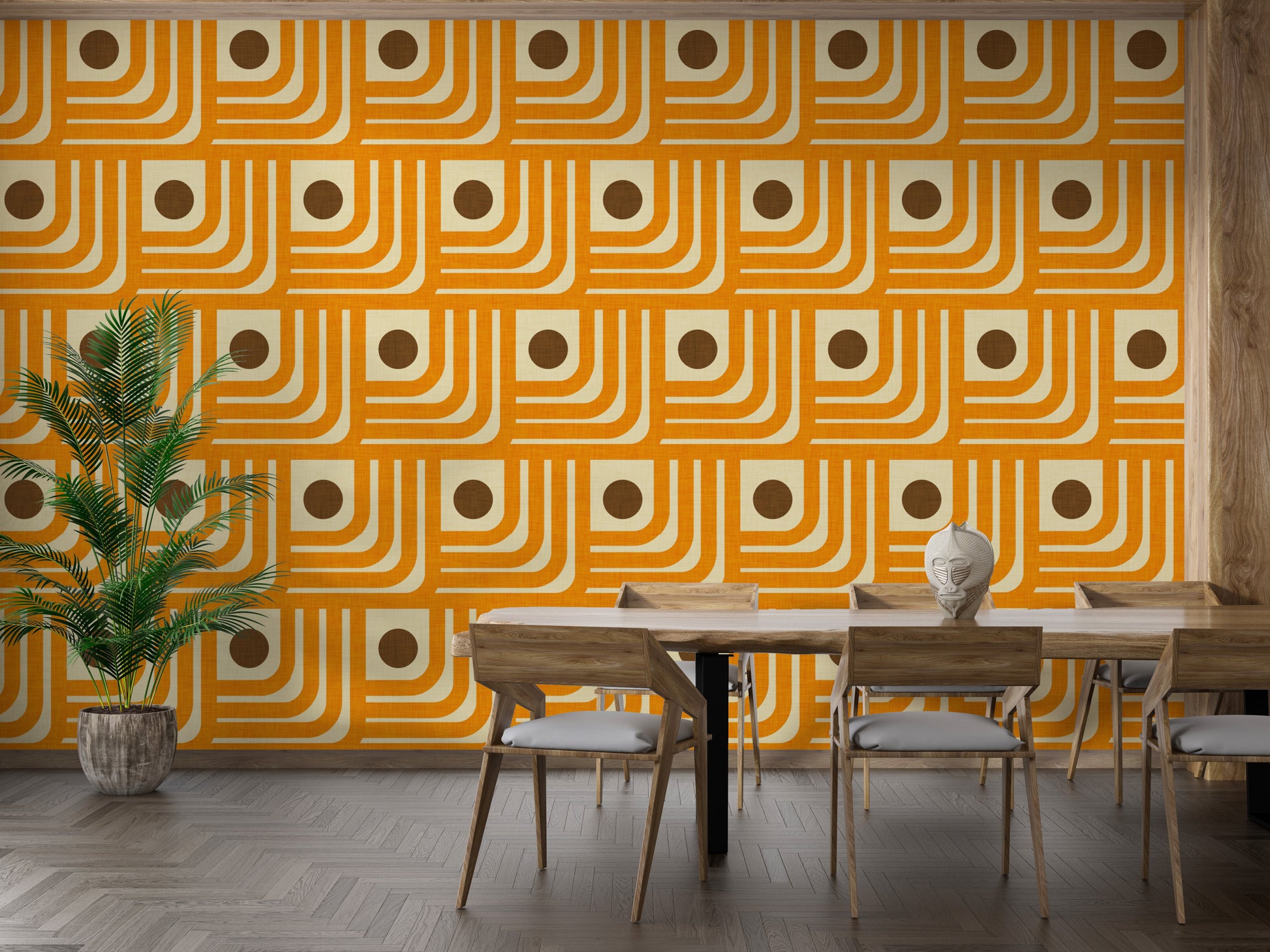 Retro orange curves and dots wallpaper mural