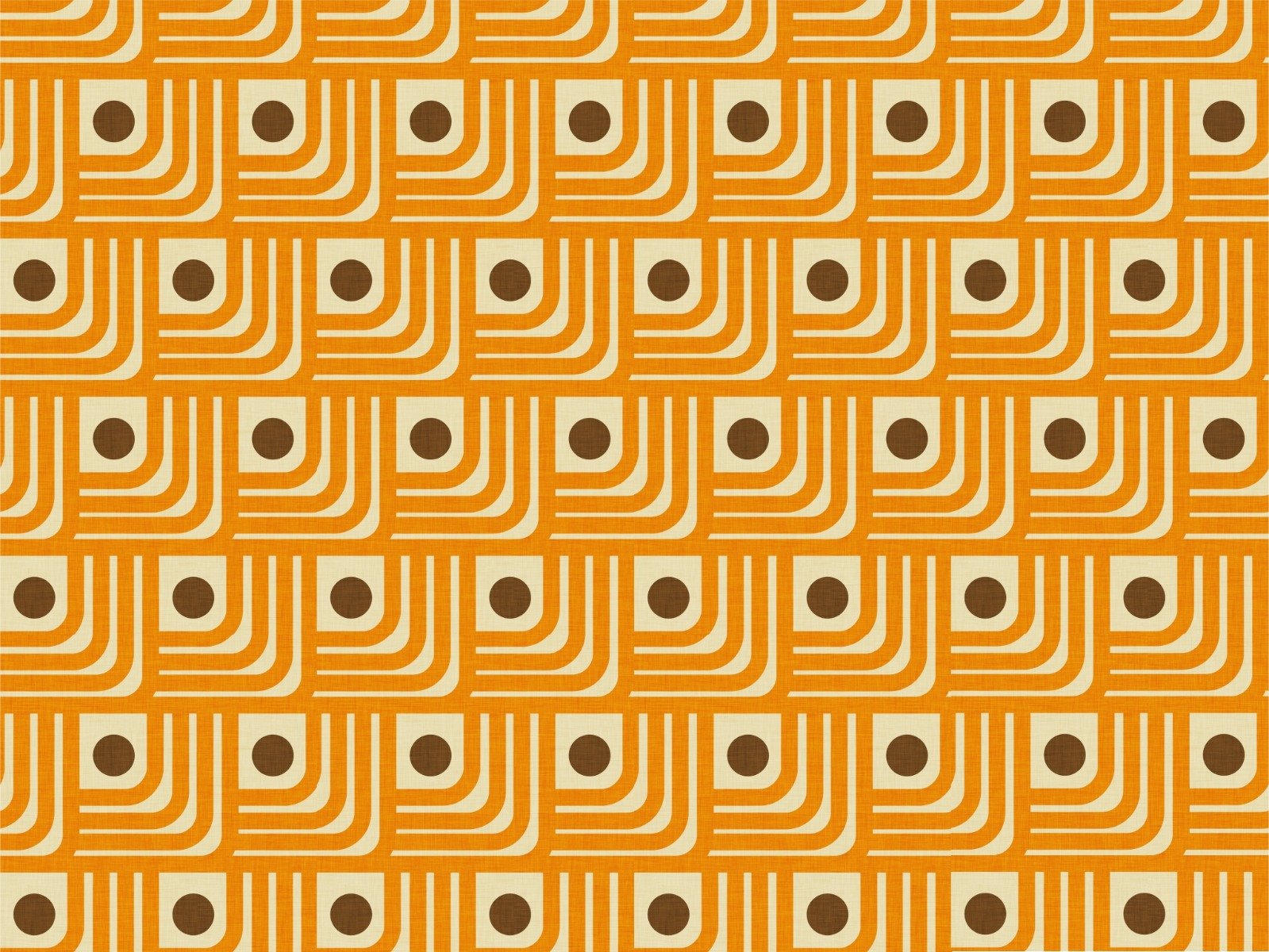 Retro 70s orange line wallpaper with brown dots