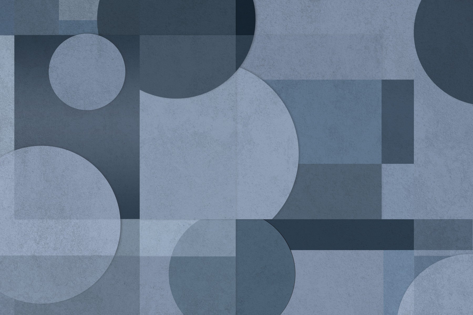 Transform your space with this sophisticated wallpaper. The arrangement of overlapping circles and squares creates a visual rhythm. Shades of blue generate a calming effect. The textured finish introduces a subtle tactile dimension. This wallpaper for walls improves the look of spaces like bedrooms or studies. The design blends with contemporary and scandinavian interiors. Install this wallpaper and invite peace.