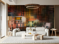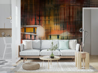 Invite creative energy into your home with this captivating abstract wallpaper. Vertical lines and vibrant colors create a stylish modern scene. Warm hues of orange, yellow, and red play beautifully against the darker tones. This design is perfect for spaces needing a unique touch. Use this wallpaper for walls in a living room, dining area, or hallway to inject personality. The distinctive pattern will draw the eye and easily complements contemporary interiors.