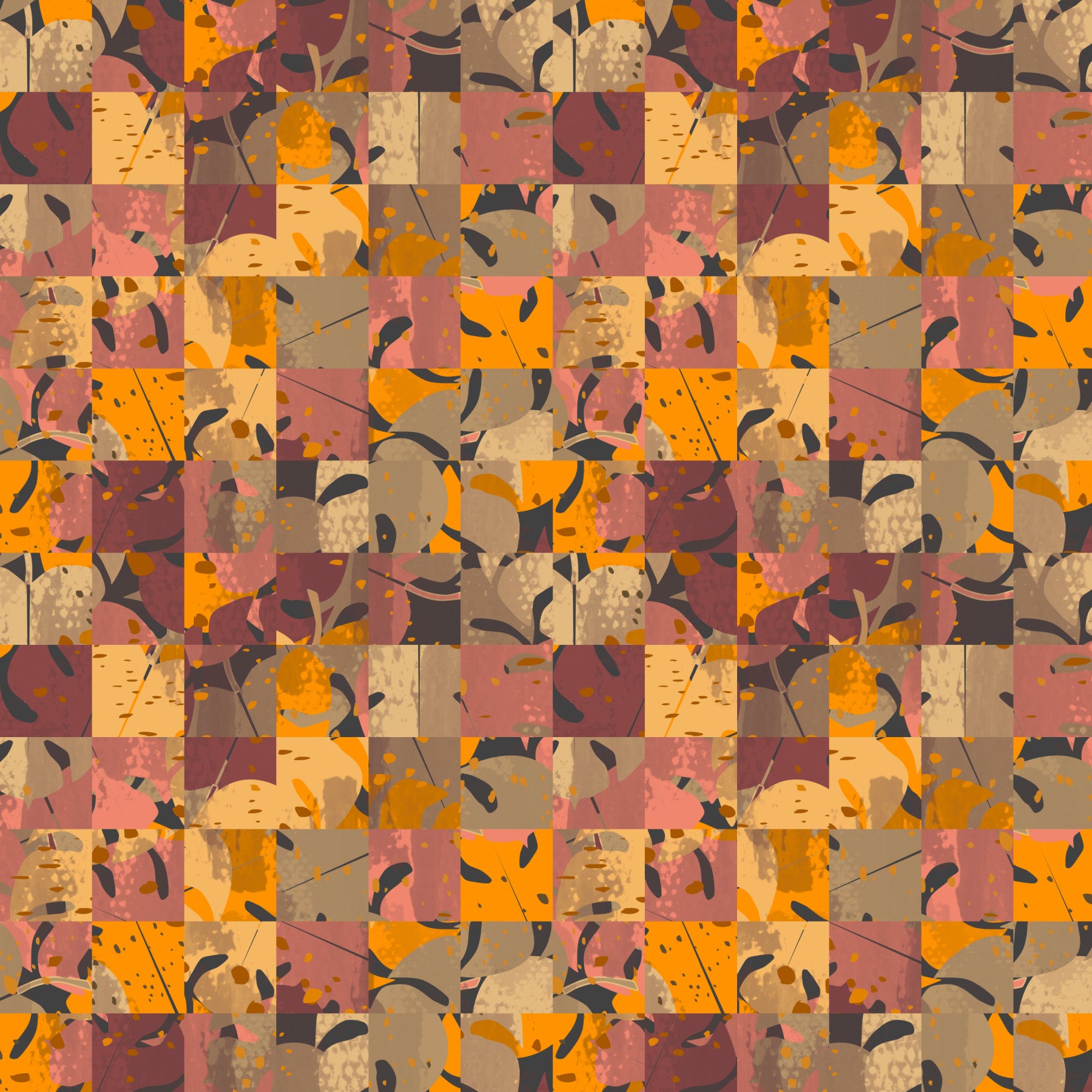 Warm autumnal tones Abstract Patchwork wall mural segmented pattern.