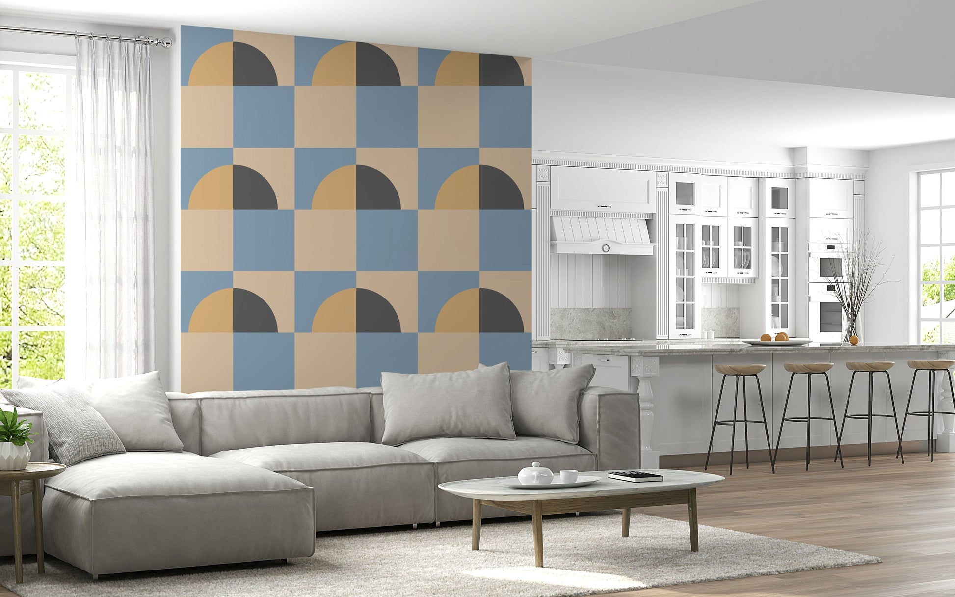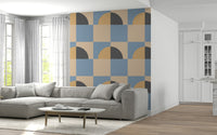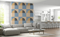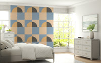 Wake up to a forever sunrise with this serene wallpaper design. Featuring a beautiful interplay of sunset orange, soft peach, and gentle blue-gray tones, it wraps your space in a feeling of instant calm and modern comfort. The oversized abstract shapes are designed to evoke peace and tranquility, making it the perfect backdrop for a relaxing bedroom or an inspiring office.
