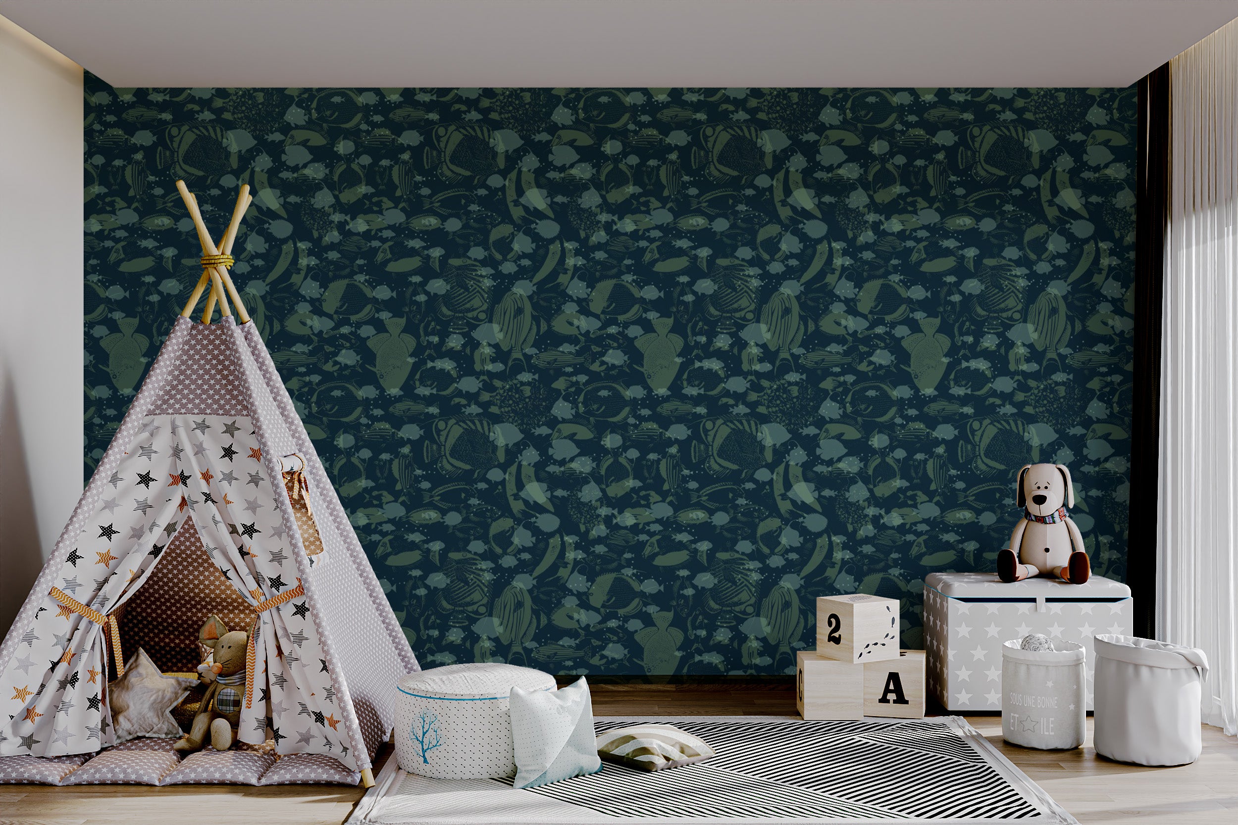 Immerse any room in the deep sea's mystery with the Abyssal Swirl Wallpaper Mural, an artistic removable wallpaper that summons the ocean's serene depths to your walls. Crafted for both longevity and convenience, this adhesive mural features a mesmerizing pattern of oceanic flora and fauna, swirling in hues of dark and misty greens, evoking the unseen beauty of underwater worlds. Its self-adhesive technology ensures a fuss-free application, allowing you to peel, position, and enjoy the allure of the deep blue without a commitment, perfect for renters or frequent decor refreshers. This mural captivates with its marine motif, promising an extraordinary backdrop that complements and enlivens any room it graces.