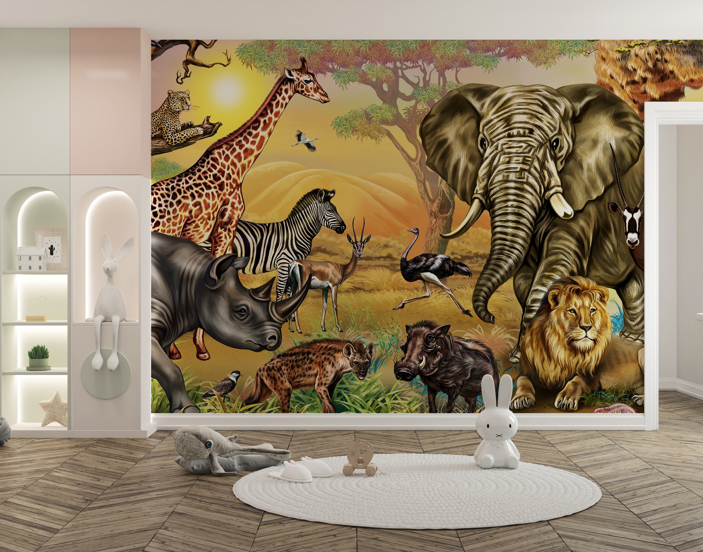 African Savannah Animals Wallpaper Mural - Giffywalls
