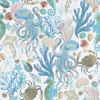 Aqua Coastal Cabin Sea Creatures Wallpaper⁠