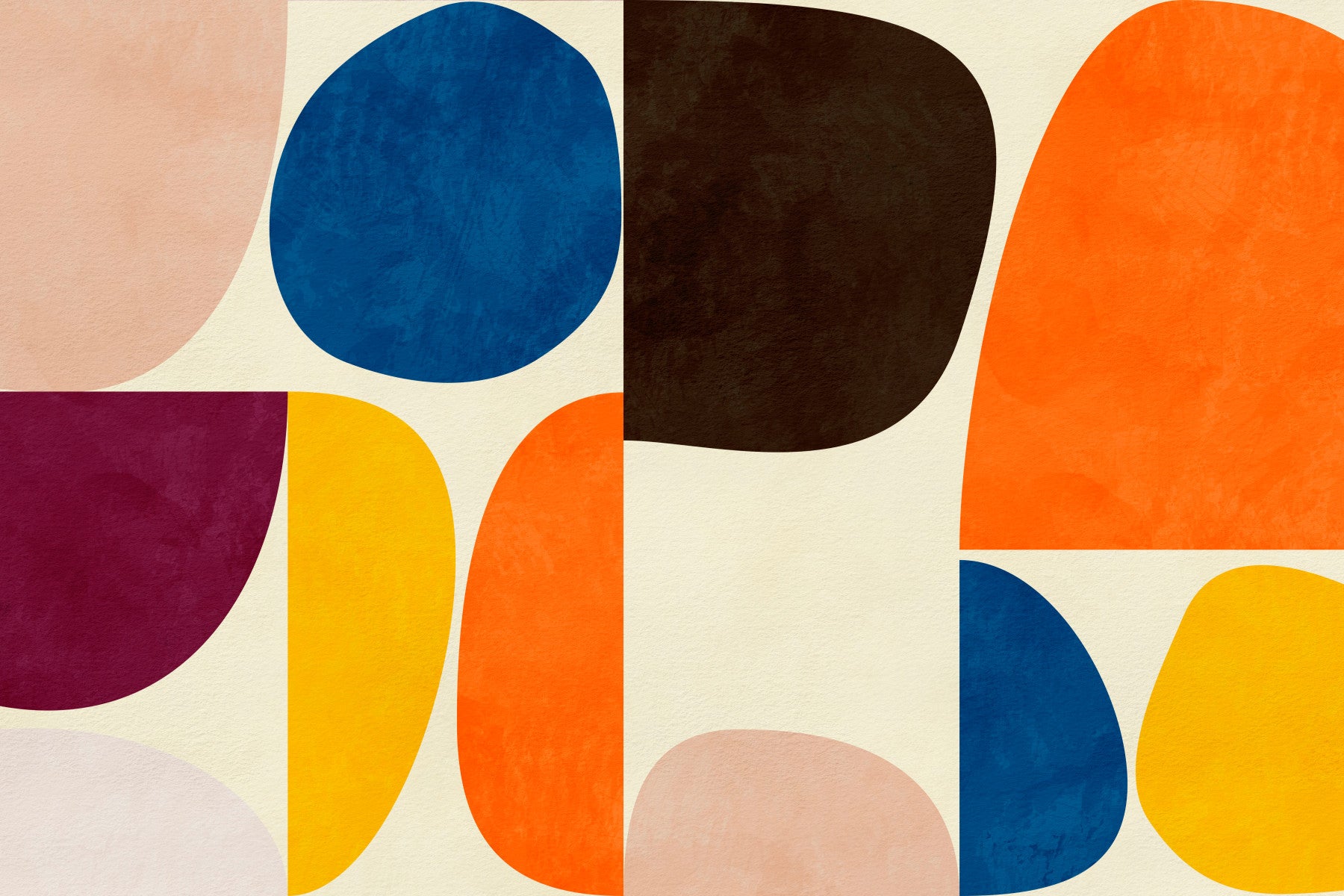 A beautiful retro geometric wallpaper mural with subtle, organic shapes.