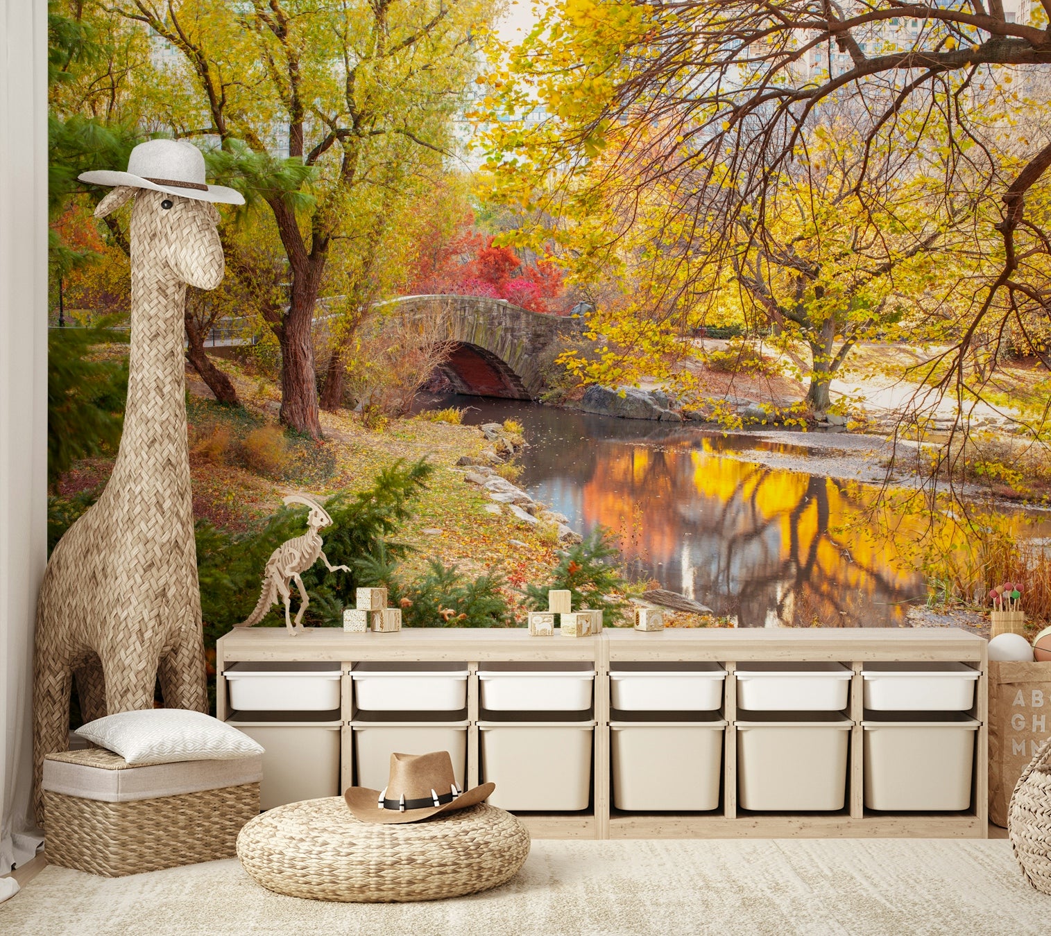 Warm autumn colors in a detailed landscape mural design