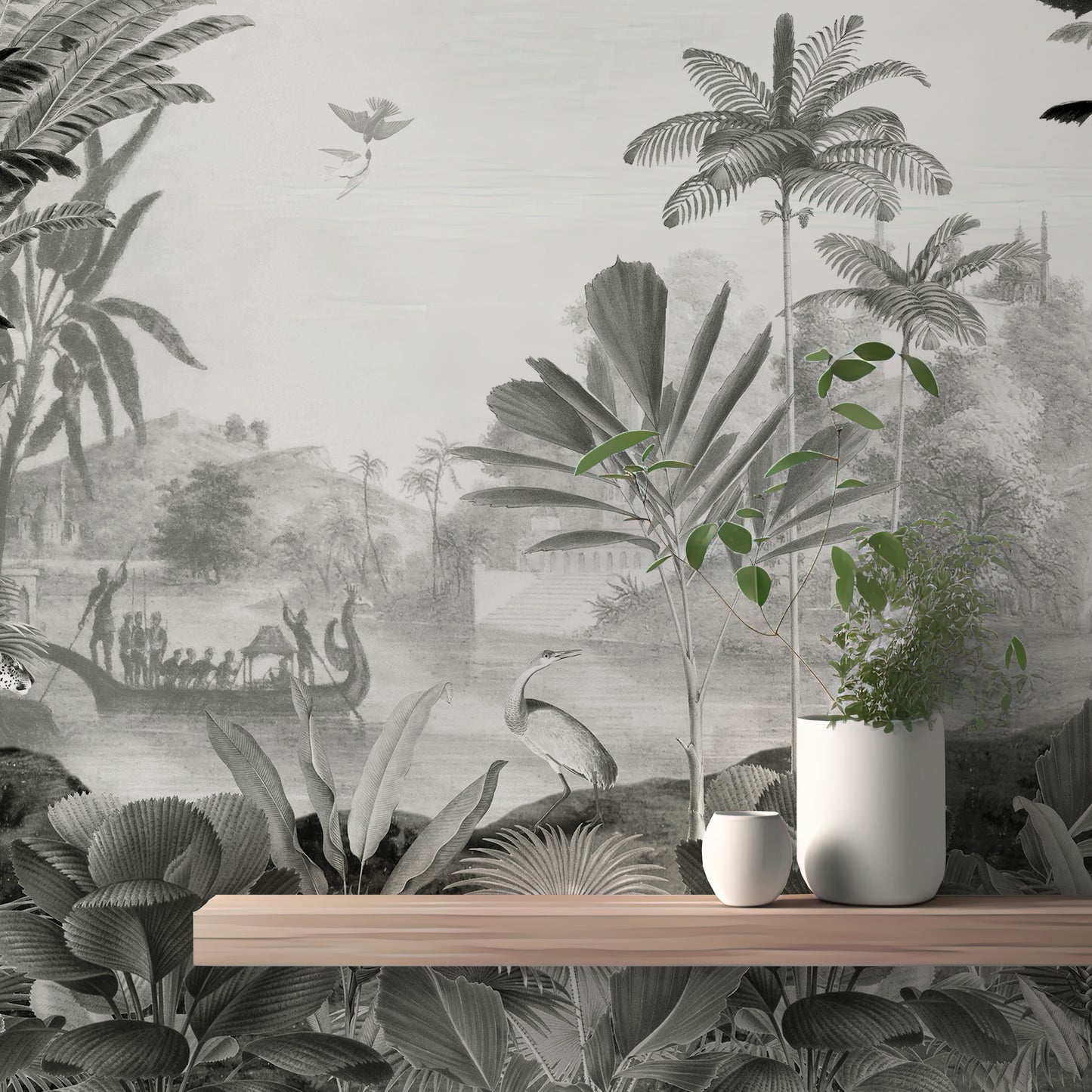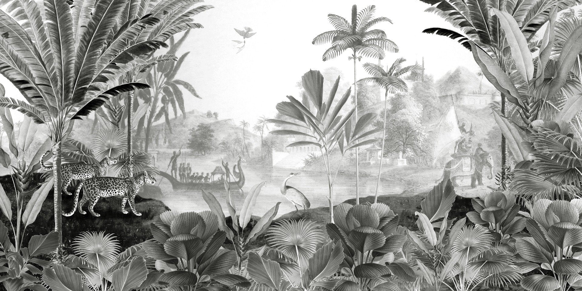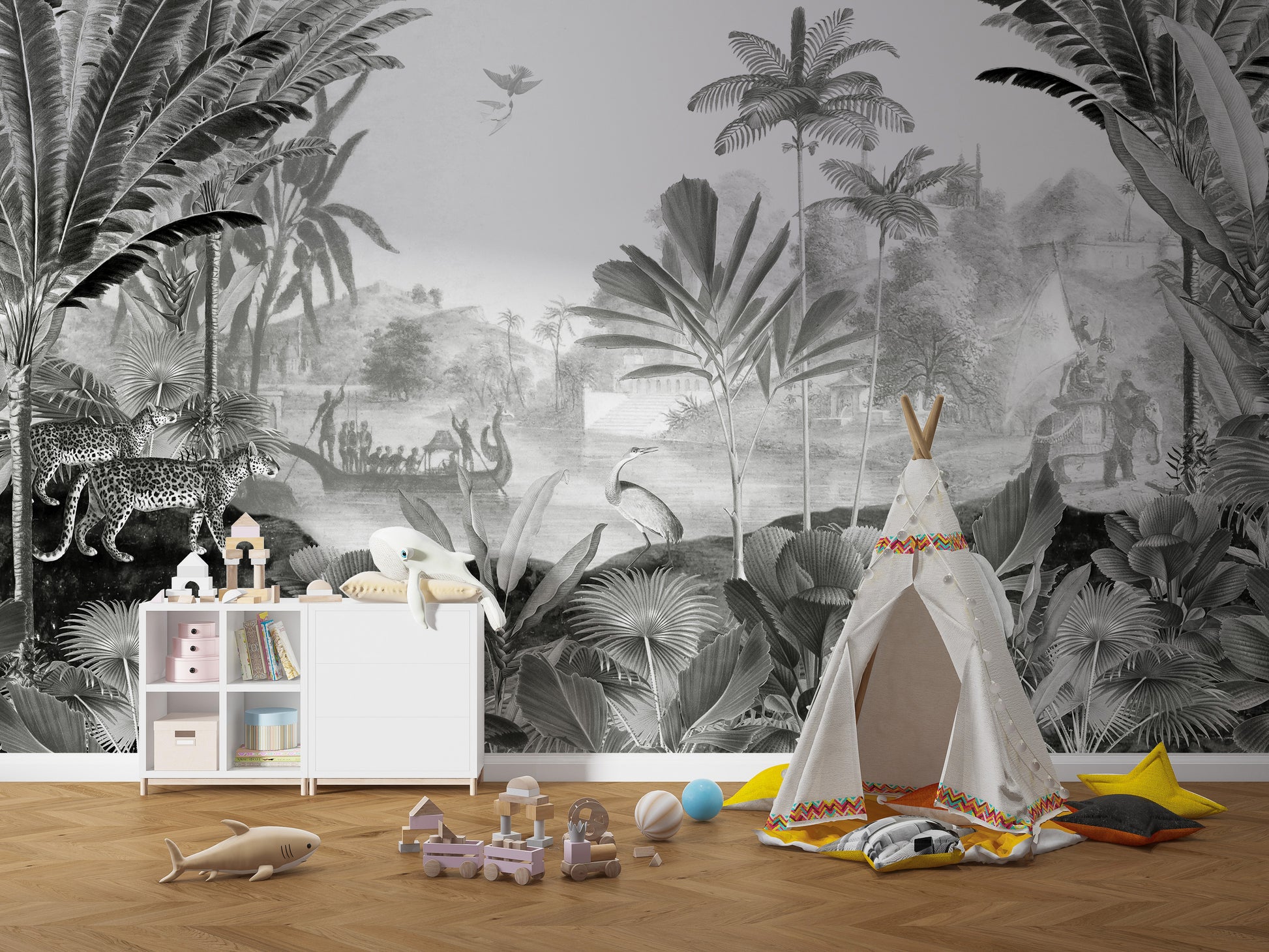 Step into the elegant wilderness with our Black and White Leopard Landscape Wallpaper. This sophisticated mural captures the silent grace of the leopard in a stunning monochrome landscape, offering a striking balance between the wild and the refined. The contrast of black and white enhances the intricate details of the leopard's habitat, creating a captivating and stylish statement in any room. Ideal for those seeking to add a touch of the exotic with a modern twist, this black and white wallpaper is a bold choice that marries the beauty of nature with chic design.